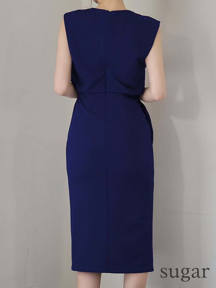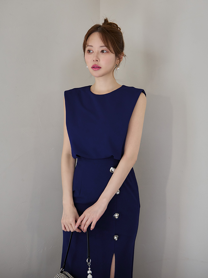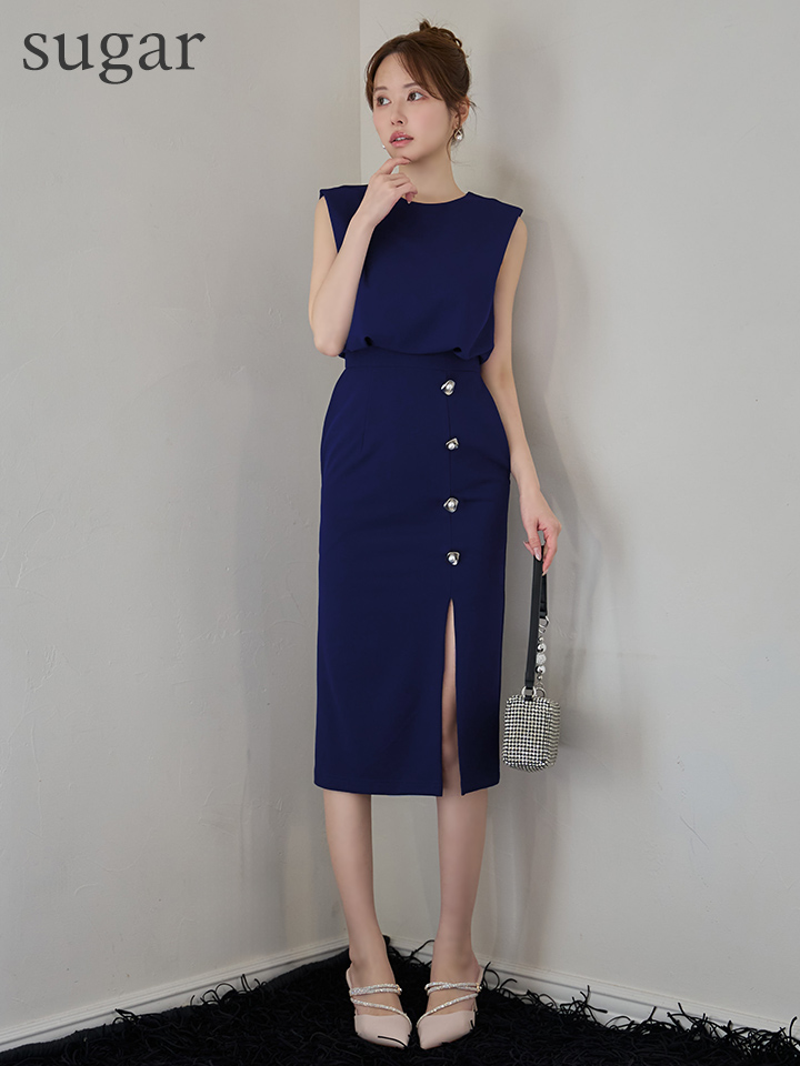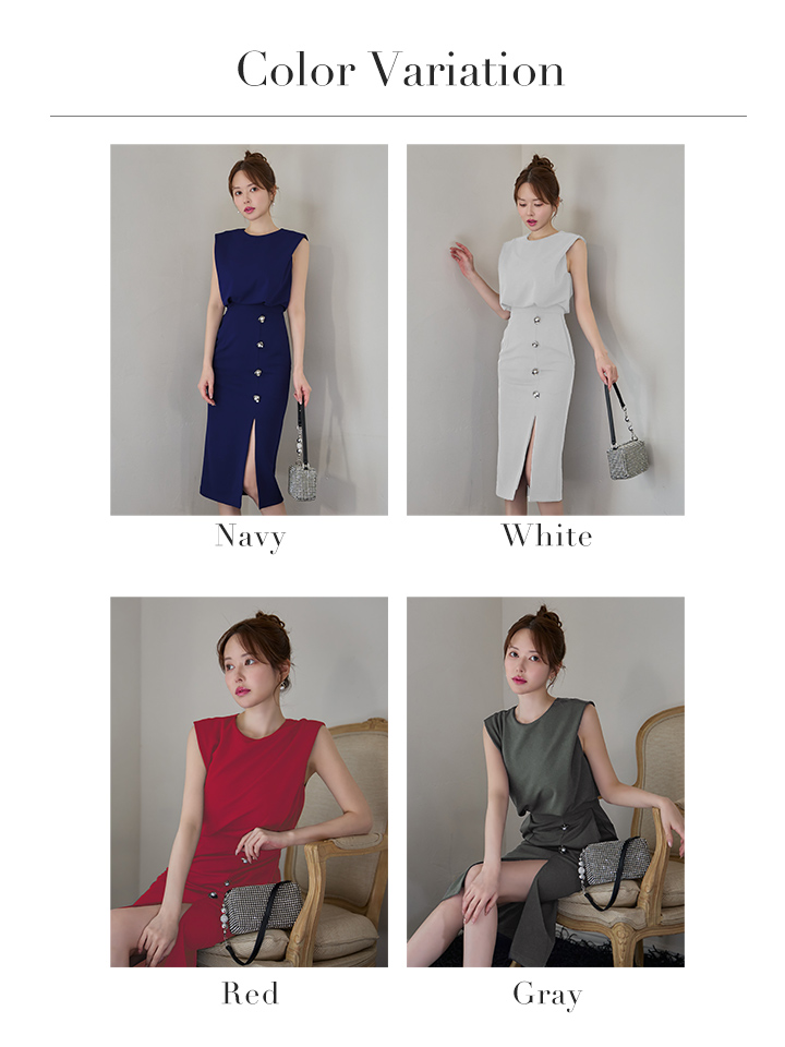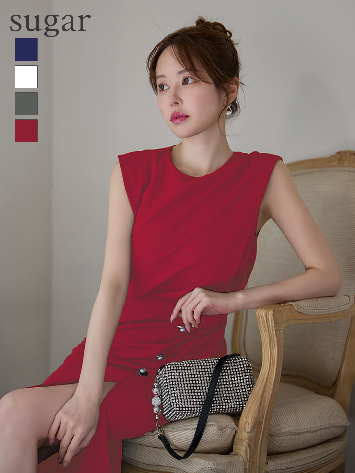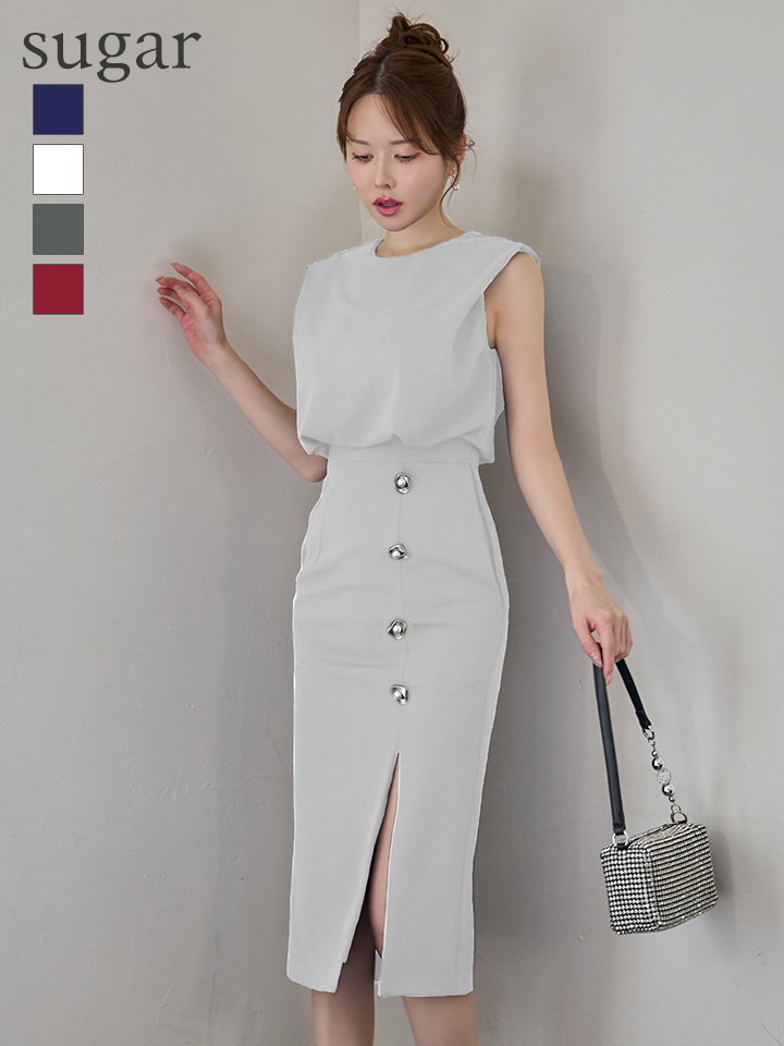 XSサイズあり【Veautt/ヴュート】【OF05】ノースリーブ/ ウエストマーク/ ボタン/ サイドスリット/ タイト/ ミディアムドレス/ キャバドレス [VT082527-R-S251127]