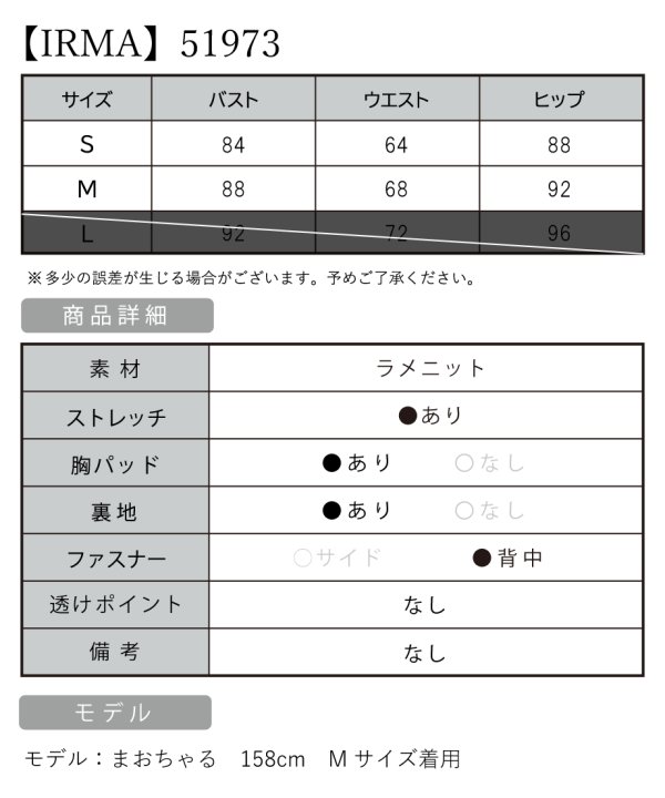 B:76-84 / W:56-64 / H:84 [着丈](脇下)約112cm |