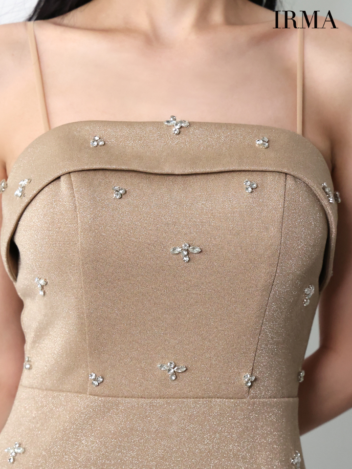 【IRMA/イルマ】ビジュー/ ラメニット/ キャミソール/ タイト/ スリット/ ロングドレス/ キャバドレス long[OF2A] [51973-IR-CHPRose-2511]