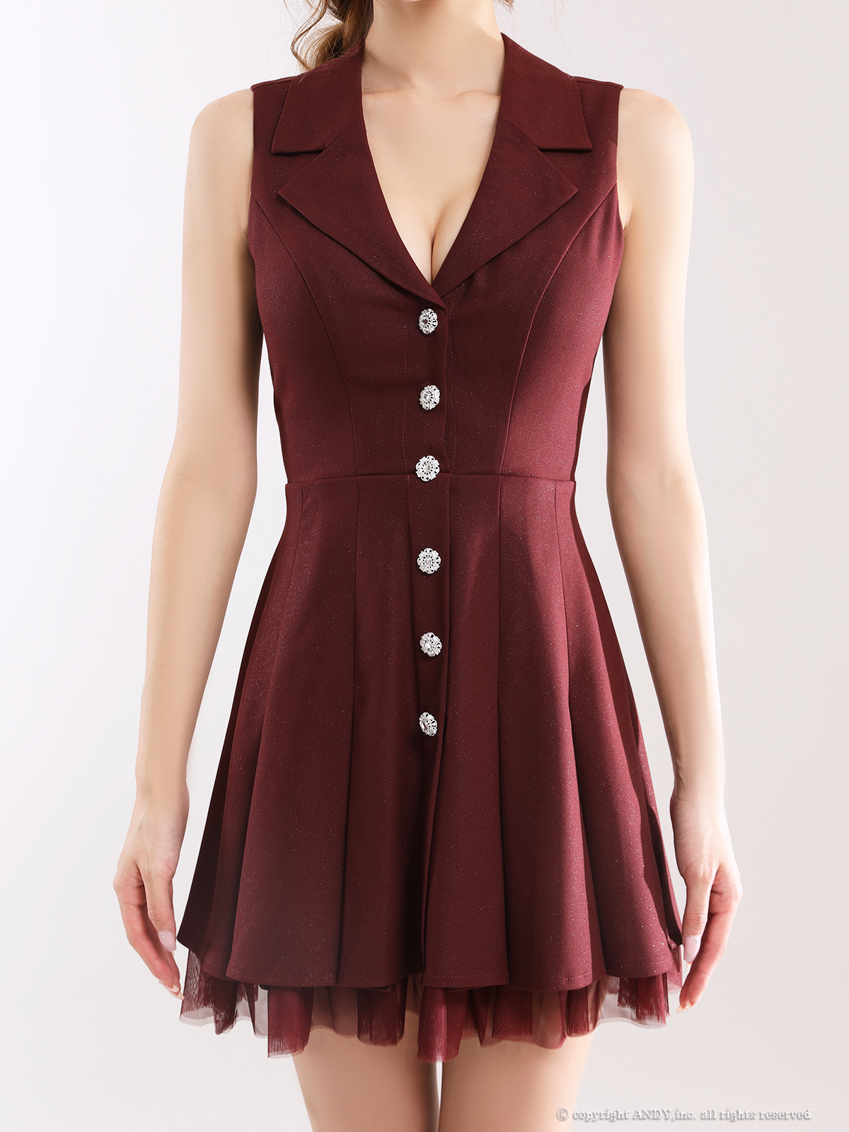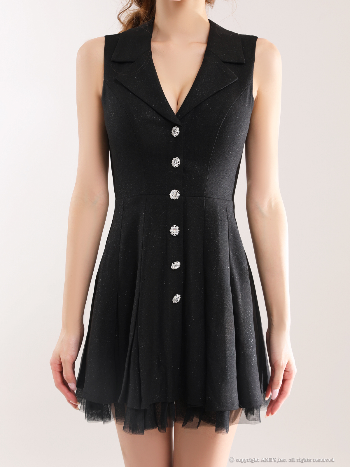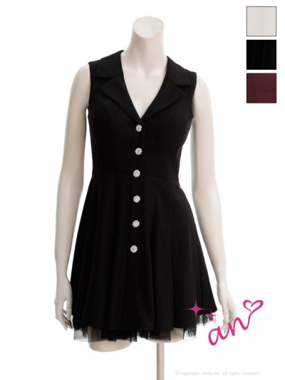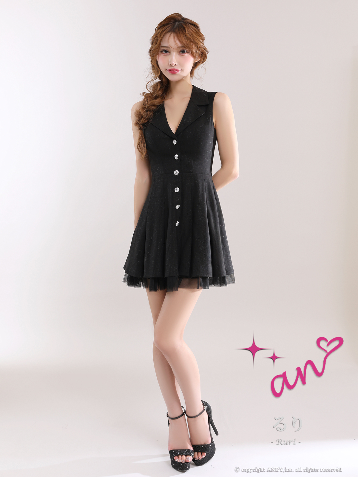 XSサイズあり【an /アン】襟付き/ ボタン/ シンプル/ プリーツ/ フレア/ ノースリーブ/ ミニドレス/ キャバドレス[OF05] [AOC4019-B-2511]