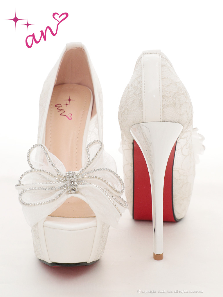 【an】2color/ 14cmヒール/ チュールリボン/ ラインストーン/ レース/ シアー/ ハイヒール/ ピンヒール/ オープントゥパンプス [OF02] [AOC-SH053-W-2511]