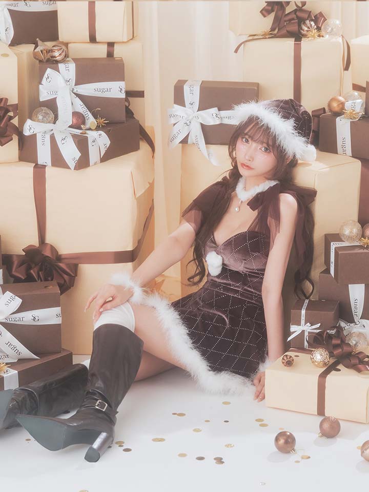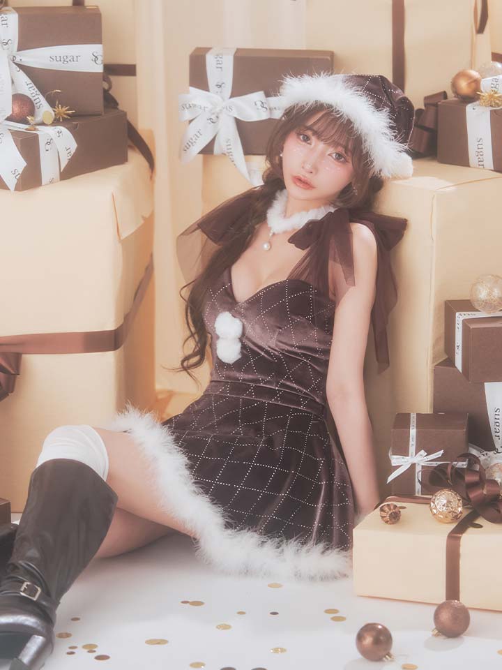 【即日発送】【サンタ】チュールリボンアーガイル風サンタコスプレ【コスプレ6点セット】【XS-XLサイズ/3カラー】[OF04] [SS-182-YN-dzw-BR-25CC]
