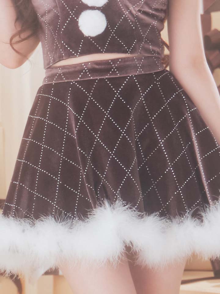 ベージュブラウン 茶色 スカート ミニスカート フレアスカート 胸盛り