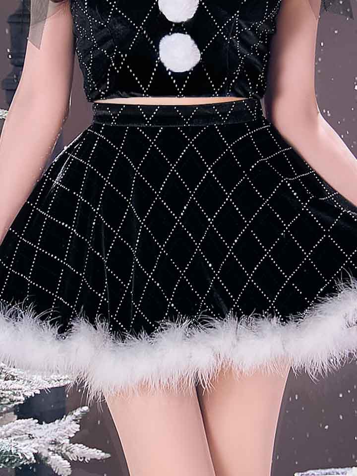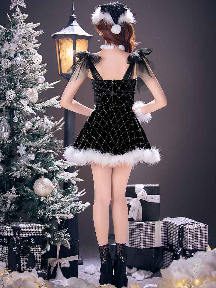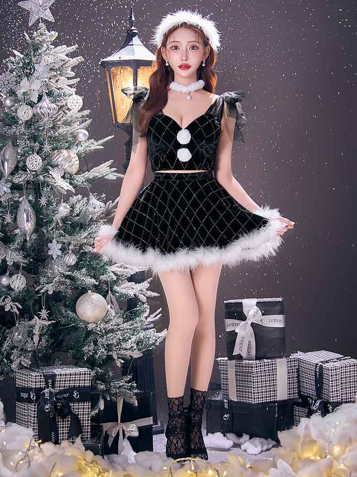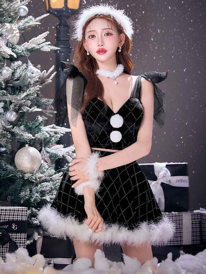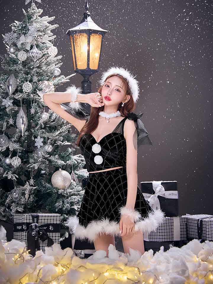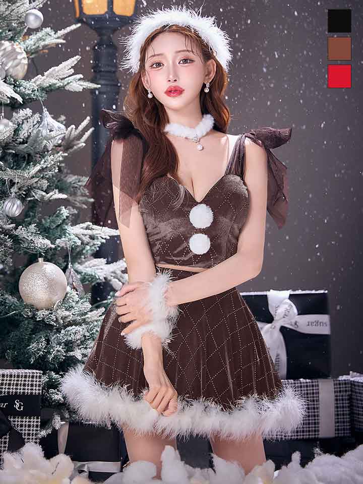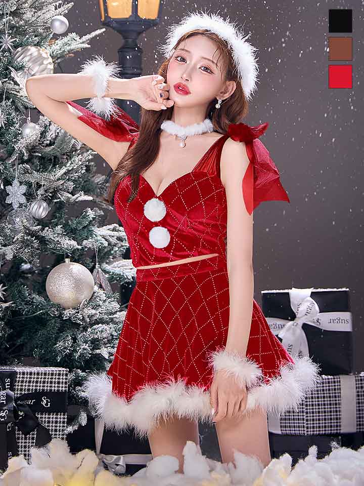 【即日発送】【サンタ】チュールリボンアーガイル風サンタコスプレ【コスプレ6点セット】【XS-XLサイズ/3カラー】[OF04] [SS-182-YN-dzw-B-25CC]