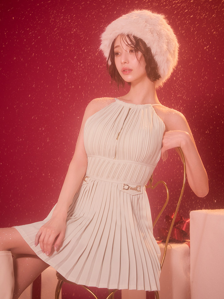 総プリーツが上品フェミニンで大人っぽいミニドレス。