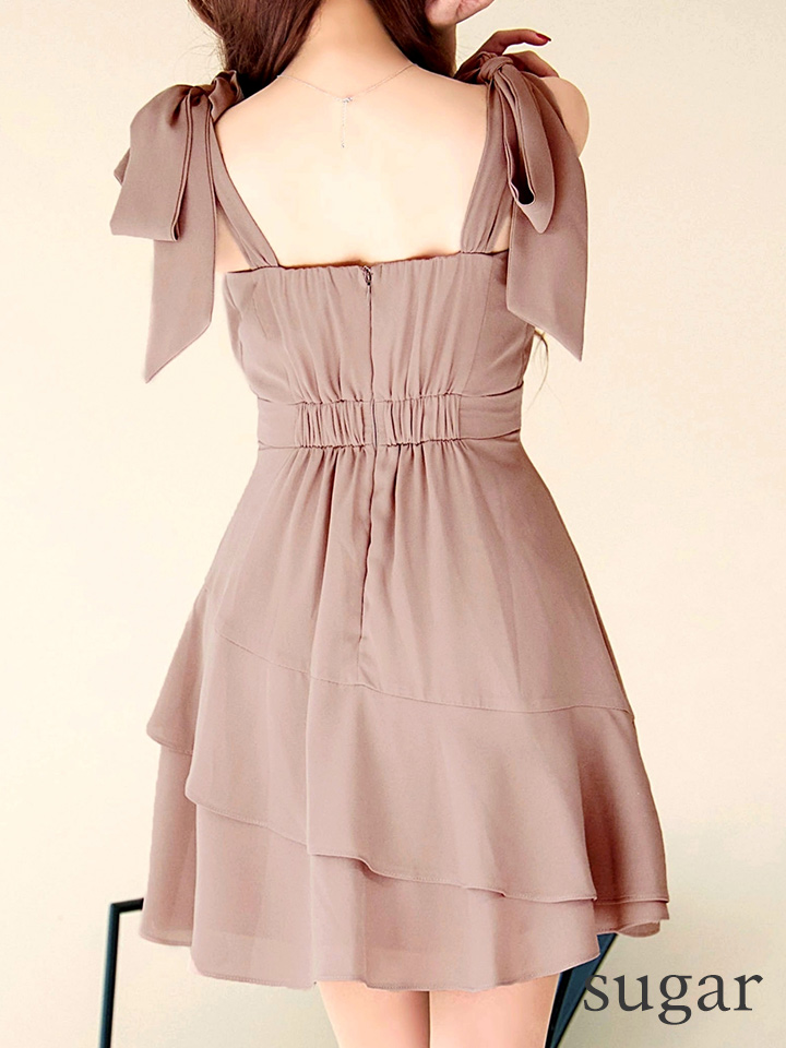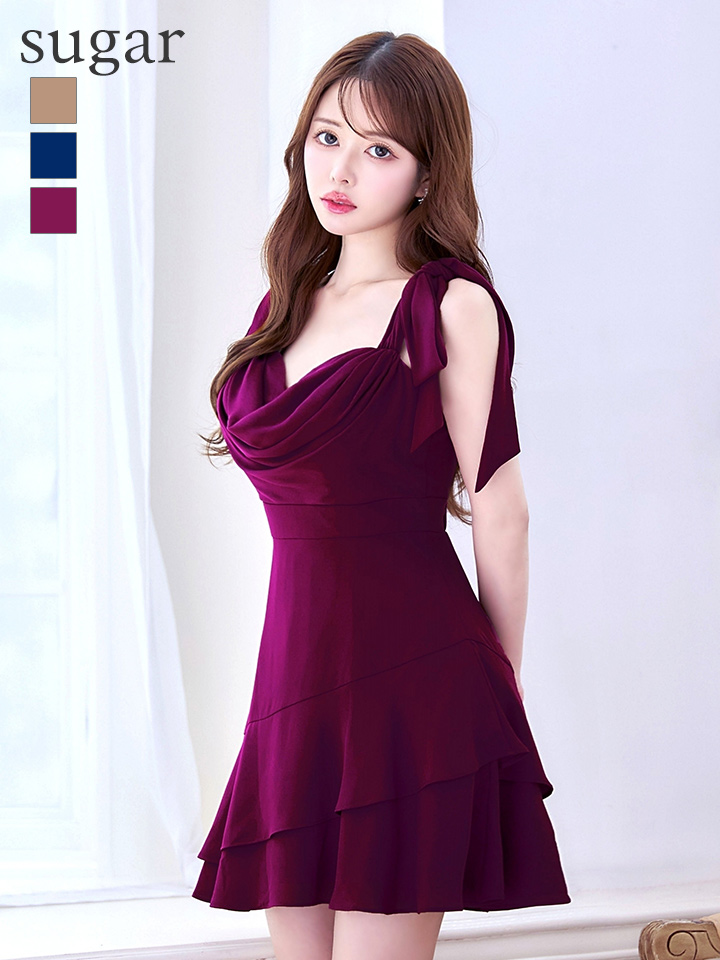 XS-Lサイズあり【Donia Quinn / ドニアクイーン】 ドレープ/ ワンカラー/ ショルダーリボン/ ノースリーブ/ フリル/ フレア/ ワンピース/ ミニドレス/ キャバドレス[OF05] [Q60234Y-BGD-S2512]