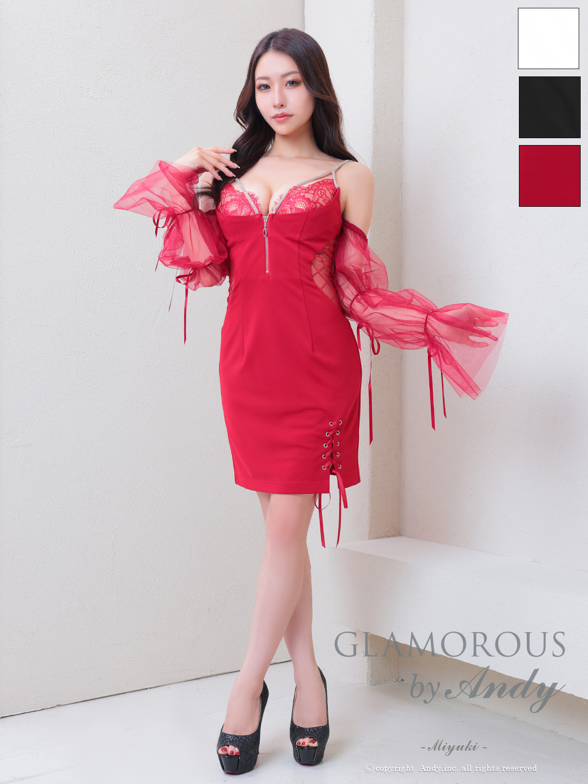 【Andy GLAMOROUS/アンディグラマラス】2WAY/ ビジューチェーン/ パフスリーブ/ キャミ/ カットアウト/ フロントジッパー/ タイト/ ミニドレス/ キャバドレス[OF05] [GMS-V875-R-2512]
