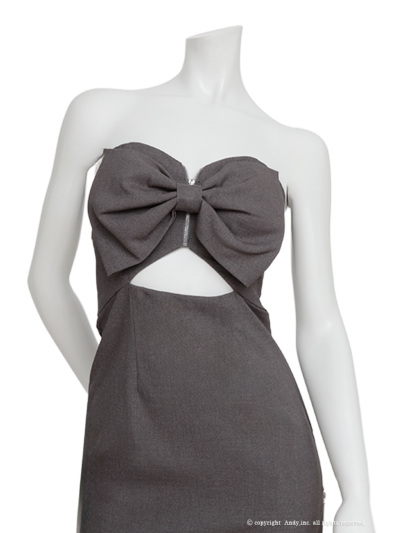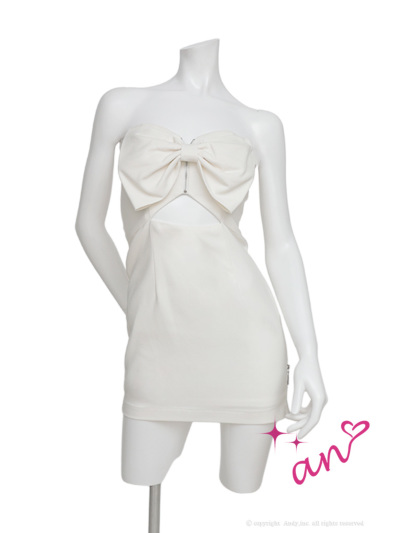 XSサイズあり【an /アン】ウエストカット/ リボン/ ベア/ フロントジップ/ タイト/ ミニドレス/ キャバドレス[OF05] [AOC4036-W-2512]