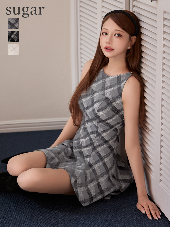 #キャバクラ #キャバ嬢 #キャバクラドレス #チェック #ツイード #ミニワンピ #フレア #ノースリーブ