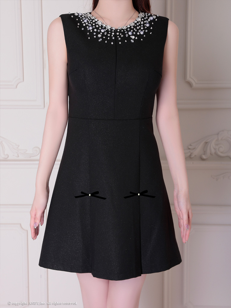 XSサイズあり【an/アン】リボン/ ビジュー/ノースリーブ/ バストジップ/ シンプル/ ラメ/ Aライン/ フレア/ プリーツ/ ワンピース/ ミニドレス/ キャバドレス[OF05] [AOC4027-W-2512]