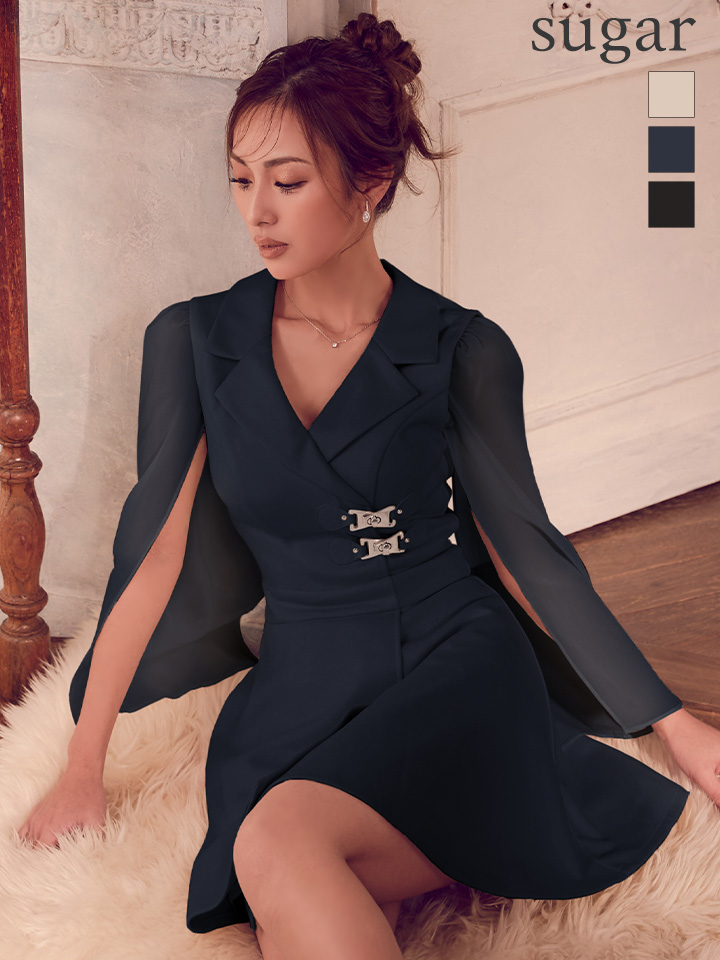 XSサイズあり【an /アン】襟付き/ 取り外し可能/ シンプル/ 2way/ ノースリーブ/ プリーツ/ フレア/ ロングスリーブ/ ミニドレス/ シースルー/ キャバドレス[OF05] [AOC4023-IV-S251204]