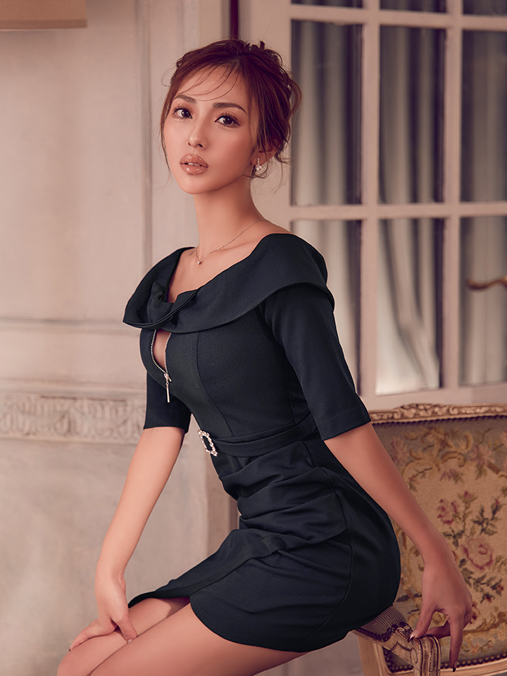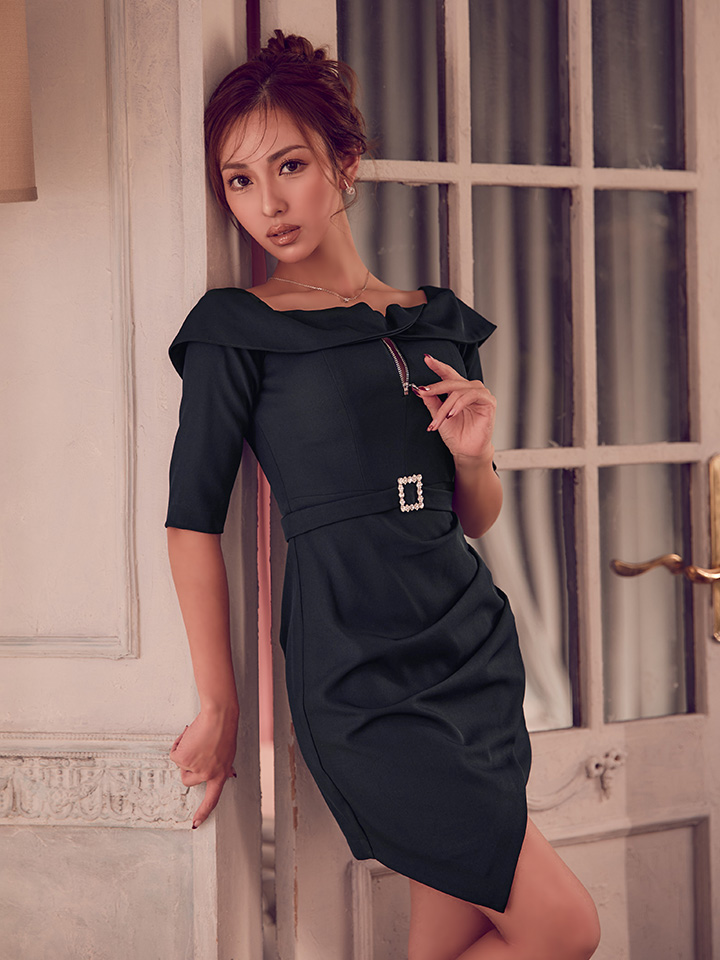 XSサイズあり【ANDY/アンディ】 タイト/ バストジップ/ タック/ アシメスカート/ ストレッチ/ 無地/ オフショルデザイン/ ミニドレス/ キャバドレス[OF05] [ON3027-NV-S251204]