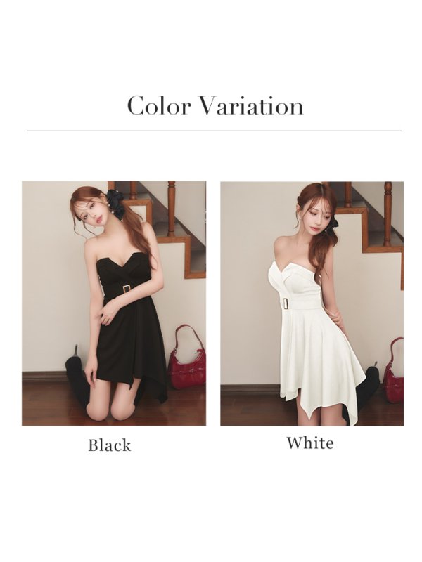 XSサイズあり【Andy GLAMOROUS/アンディグラマラス】ベアトップ/ ベルト/ フレア/ アシンメトリー/ ミニドレス/ ストレッチ/ キャバドレス[OF05] [GMS-V895-B-S2512]