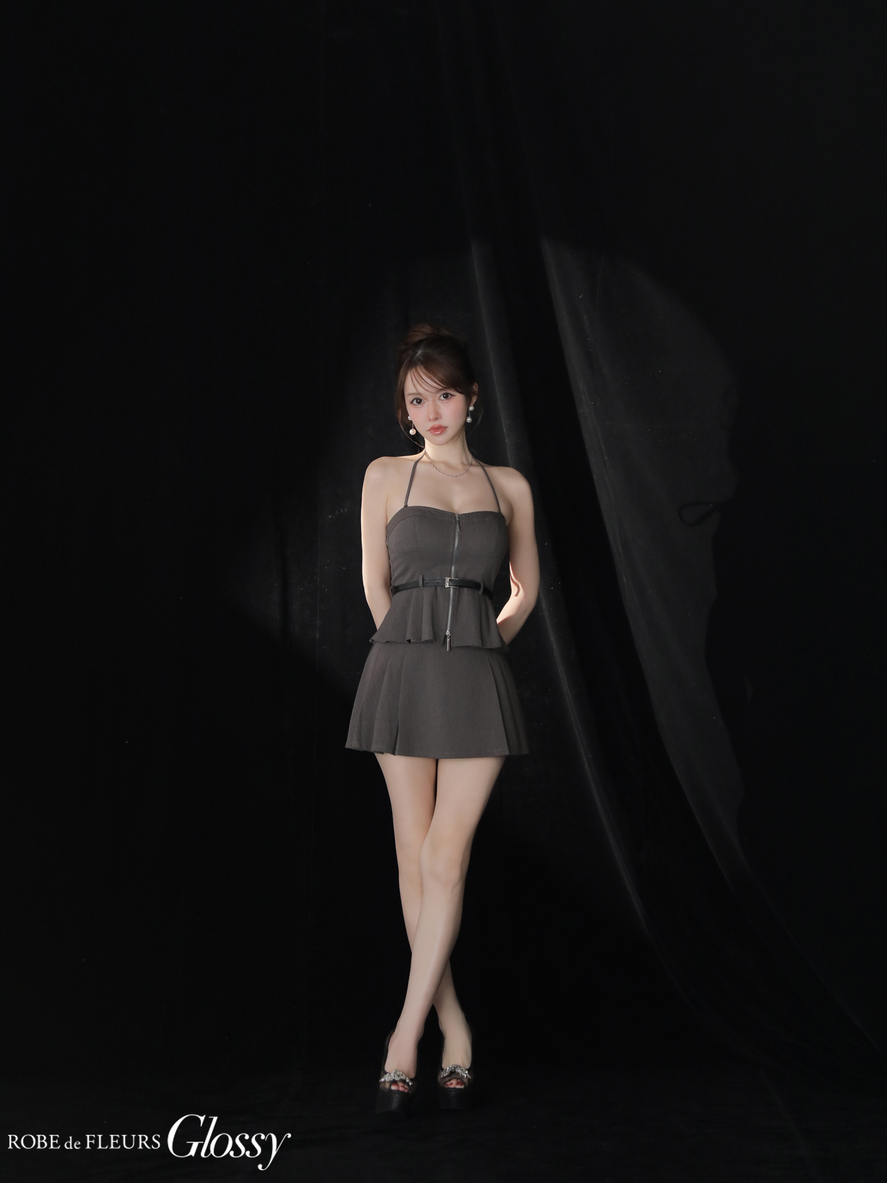 【予約商品/12月中旬発送予定】XSサイズあり【Glossy/グロッシー】ホルター/ ぺプラム/ ベア/ セットアップ/ フレア/ ミニドレス/ キャバドレス[OF08] [GL3958-B-2512]