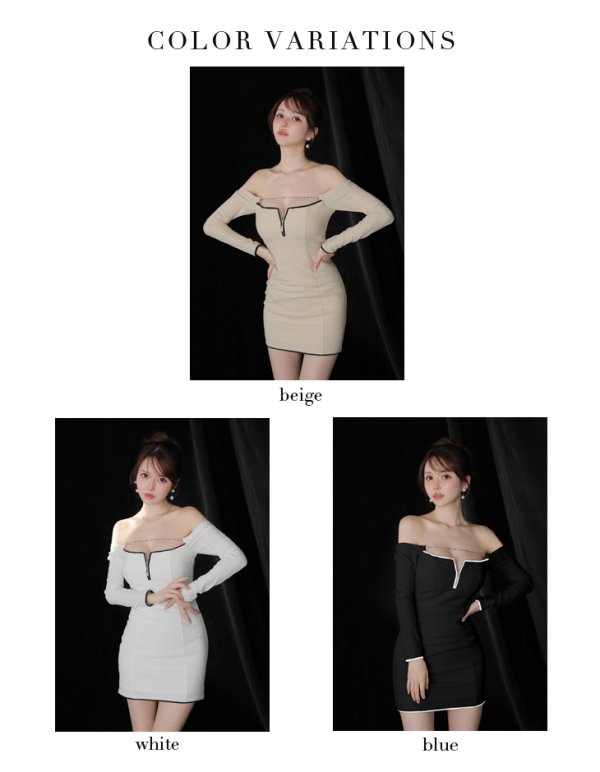【予約商品/12月中旬発送予定】XSサイズあり【Glossy/グロッシー】パイピング/ オフショル/ ロングスリーブ/ タイト/ ミニドレス/ キャバドレス[OF08] [GL4166-B-2512]