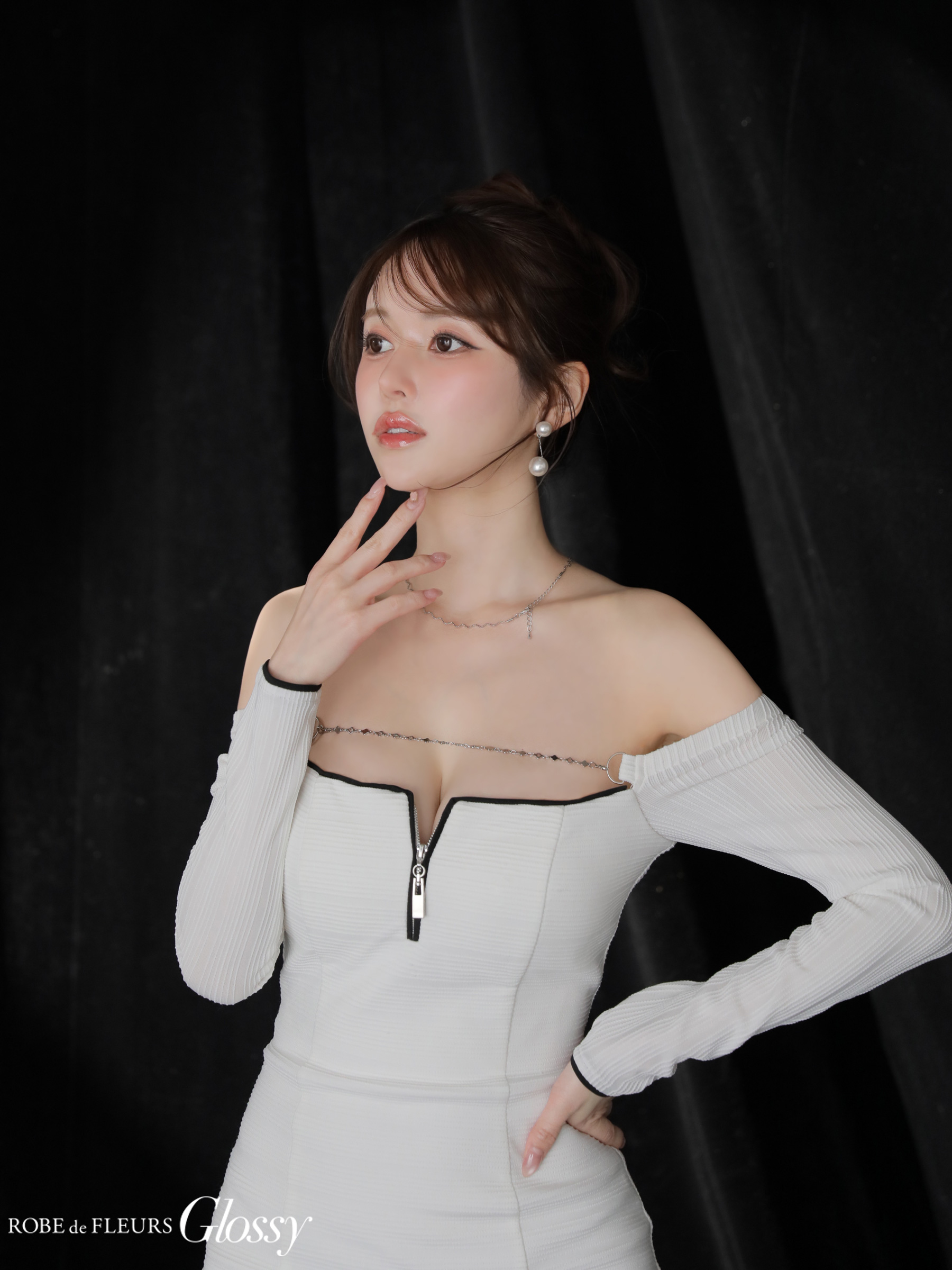 #キャバクラ #キャバ嬢 #キャバクラドレス #オフショル #袖付き #タイト #ニット #チェーン