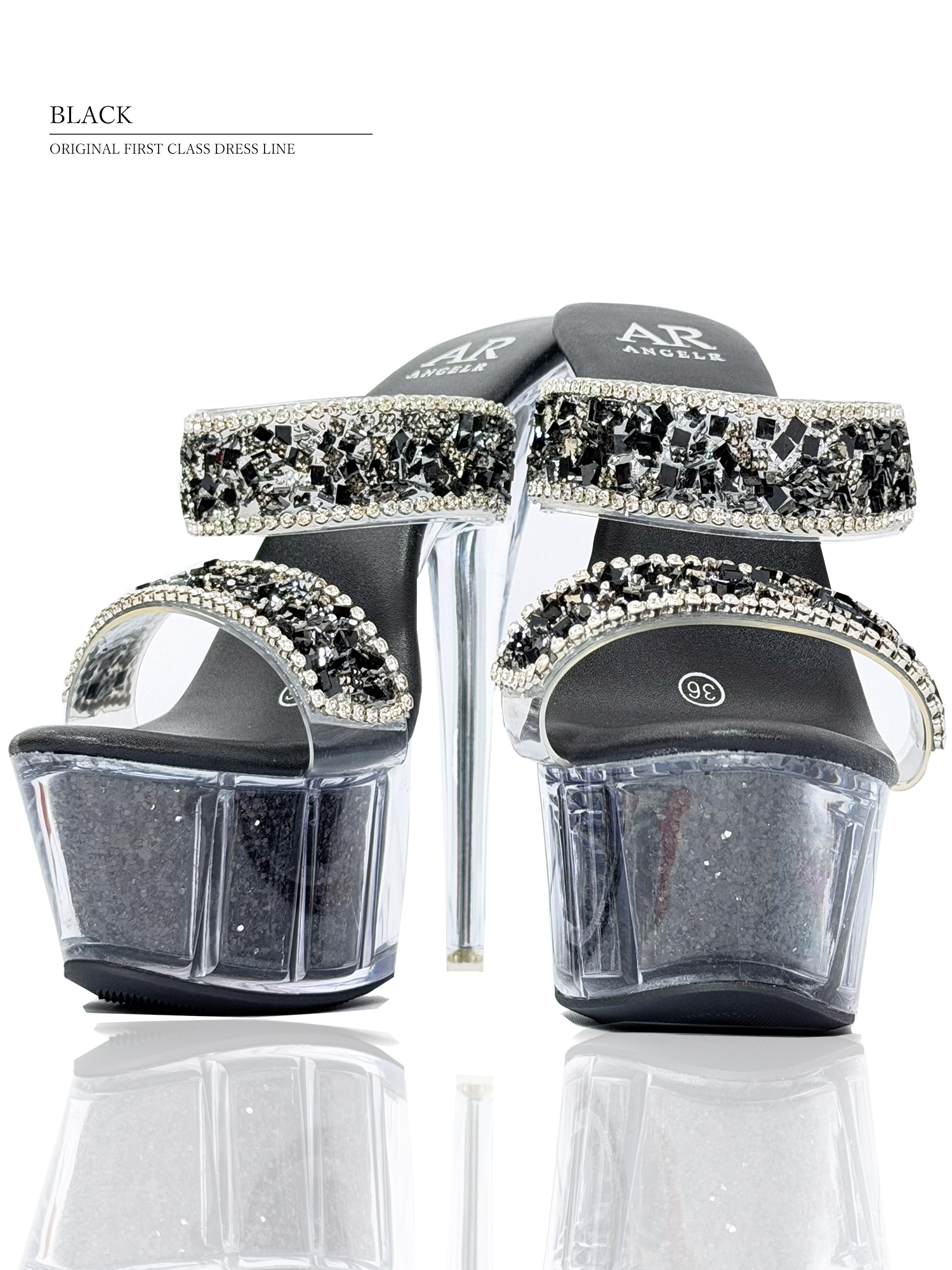 【ANGEL R/エンジェルアール】15cmヒール/ ビジュー/ ラメ/ ラインストーン/ オープントゥ/ ハイヒール/ サンダル[OF02] [SH030-B-2512]