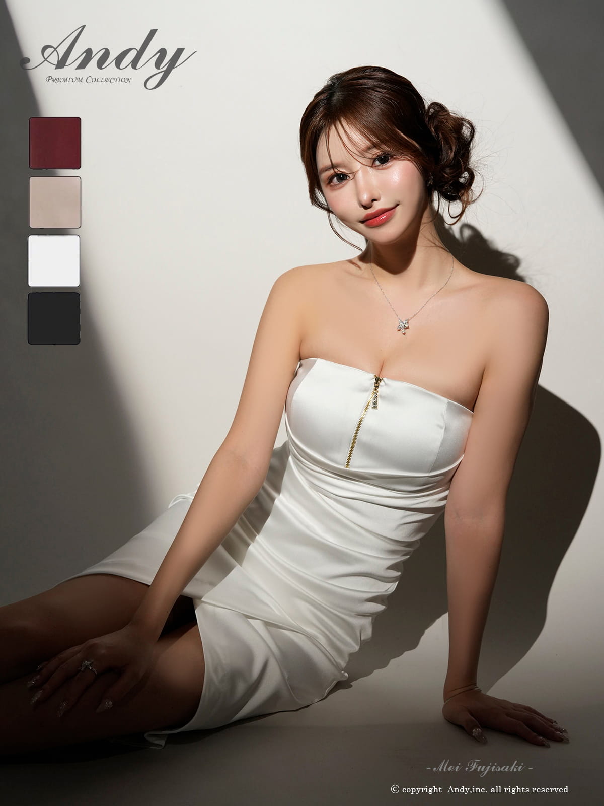 XSサイズあり【ANDY/アンディ】シンプル/ ワンカラー/ ベア/ サテン/ タイト/ フロントジップ/ ミディアムドレス/ キャバドレス[OF05]【一部予約商品/2月下旬発送予定】 [ON3030-BE-S251210]