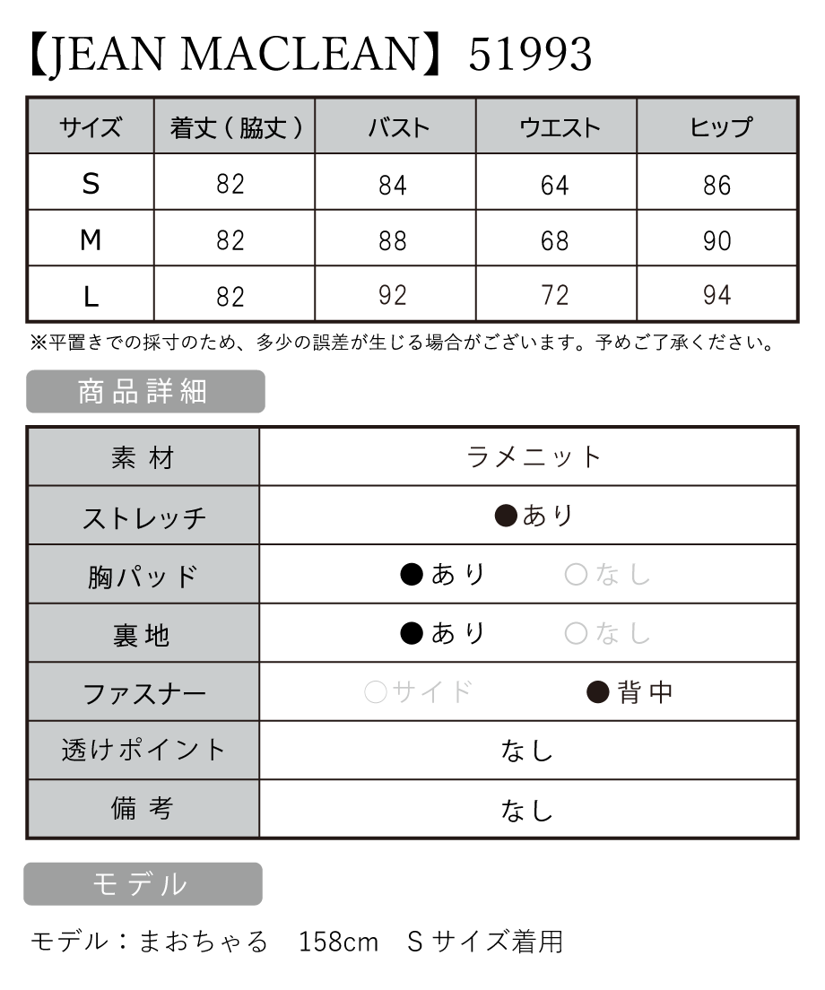 B:84 / W:64 / H:86 [着丈](脇下)約82cm |