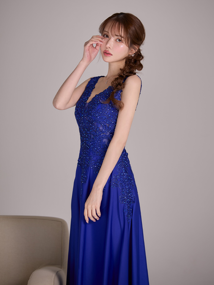 XS-Lサイズあり【SETTAN/セッタン】ワンカラー/ レース/ スパンコール/ ノースリーブ/ Aライン/ フレア/ ロングドレス / キャバドレス long[OF2] [LKS35107-RBL-S251211]