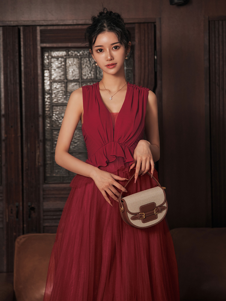 エアリーなチュールが歩くたび揺れ、可憐で清楚な雰囲気を楽しめるドレスです。