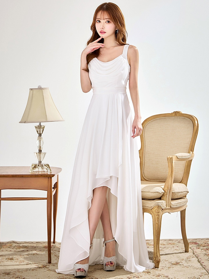 Lサイズあり【CLEO CLOE/ クレオ クロエ】 オケージョンドレス/ パーティードレス/ ステージドレス/ イベントドレス/ バストドレープ/ ノースリーブ/ 変形ヘムライン/ フレア/ ロングドレス long[OF05] [L60229L-IV-S2512]