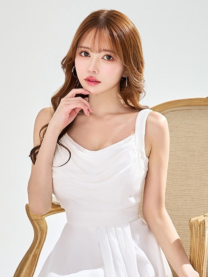 変形ヘムスカートから覗く美脚がセクシーさをプラスし、ハイウエスト切替xフレアスカートが360度美しいシルエットを演出◎