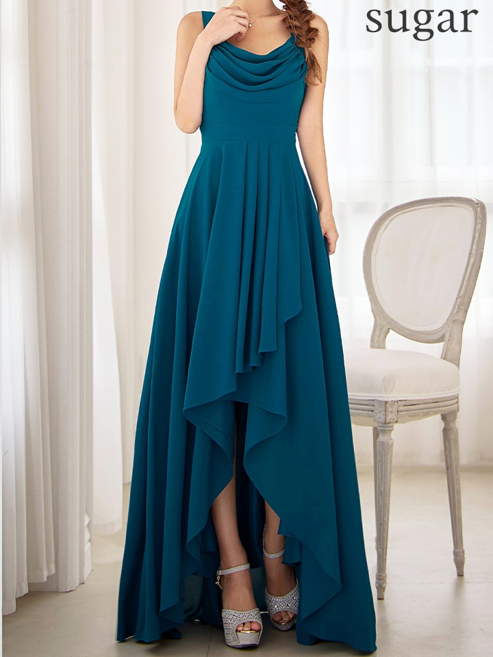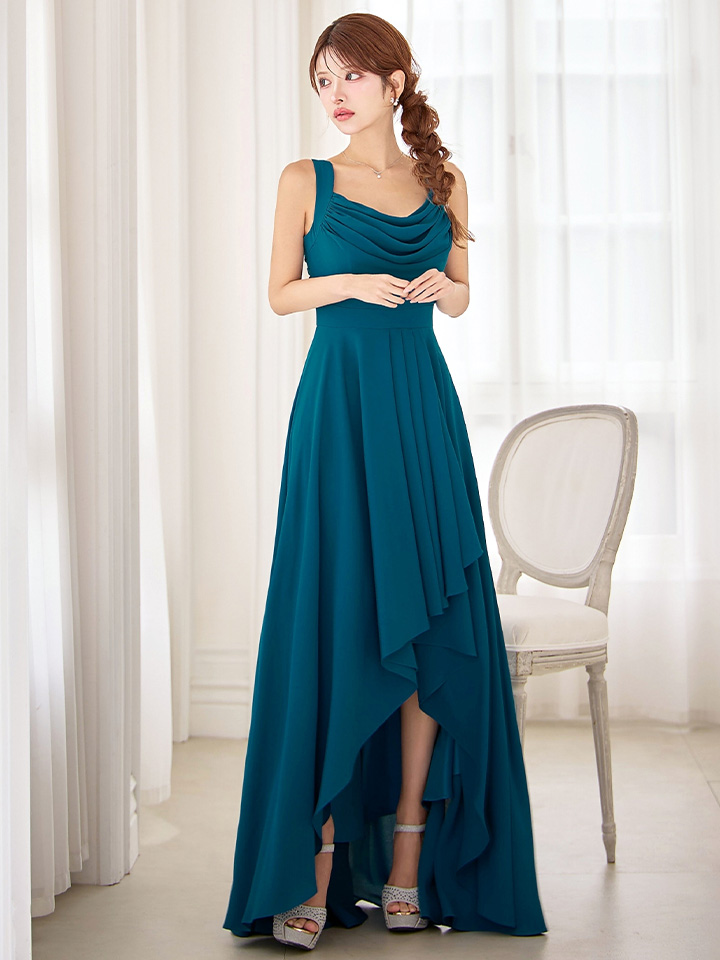 ゆったりとしたバストドレープが大人のエレガンス感じさせるフレアロングドレス♡