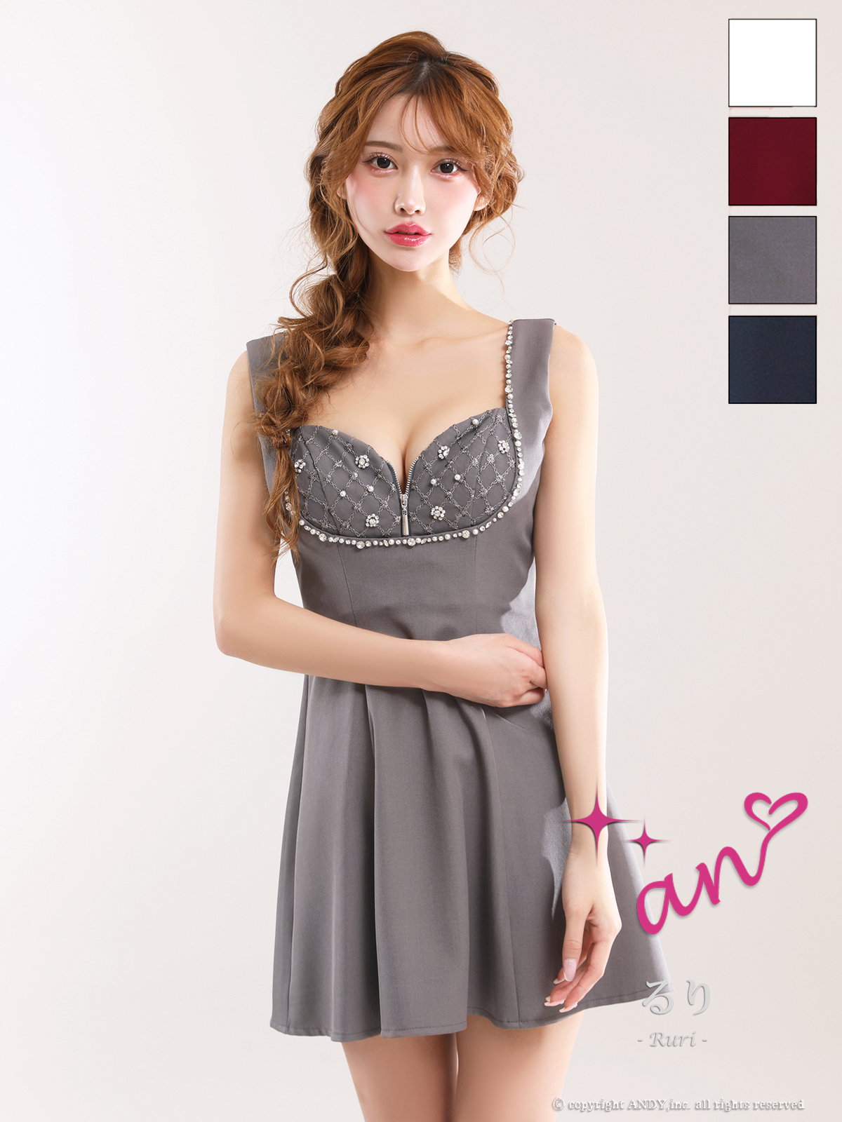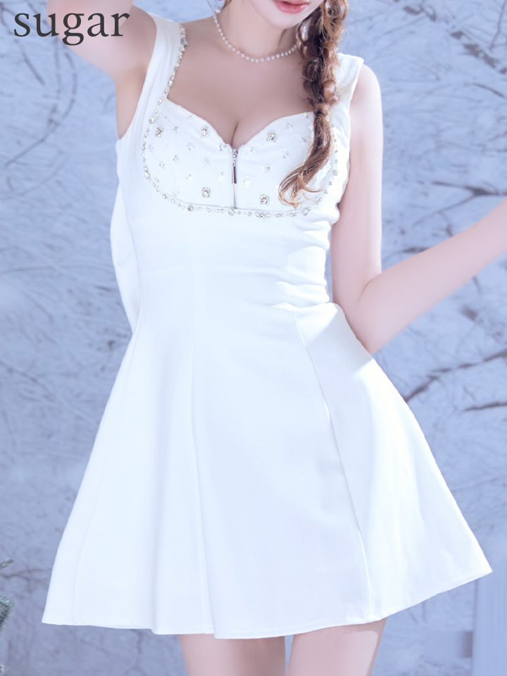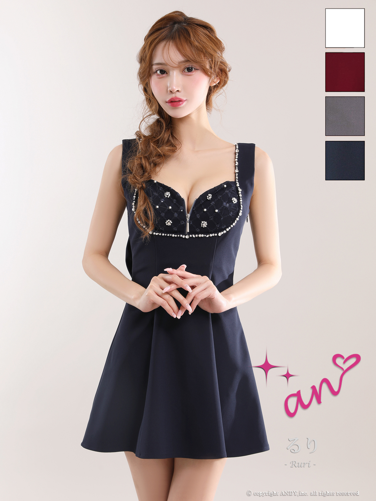 XSサイズあり【an /アン】ビジュー/ バストジップ/ ノースリーブ/ バックオープン/ リボン/ ミニドレス/ キャバドレス[OF05] [AOC3969-W-S251213]