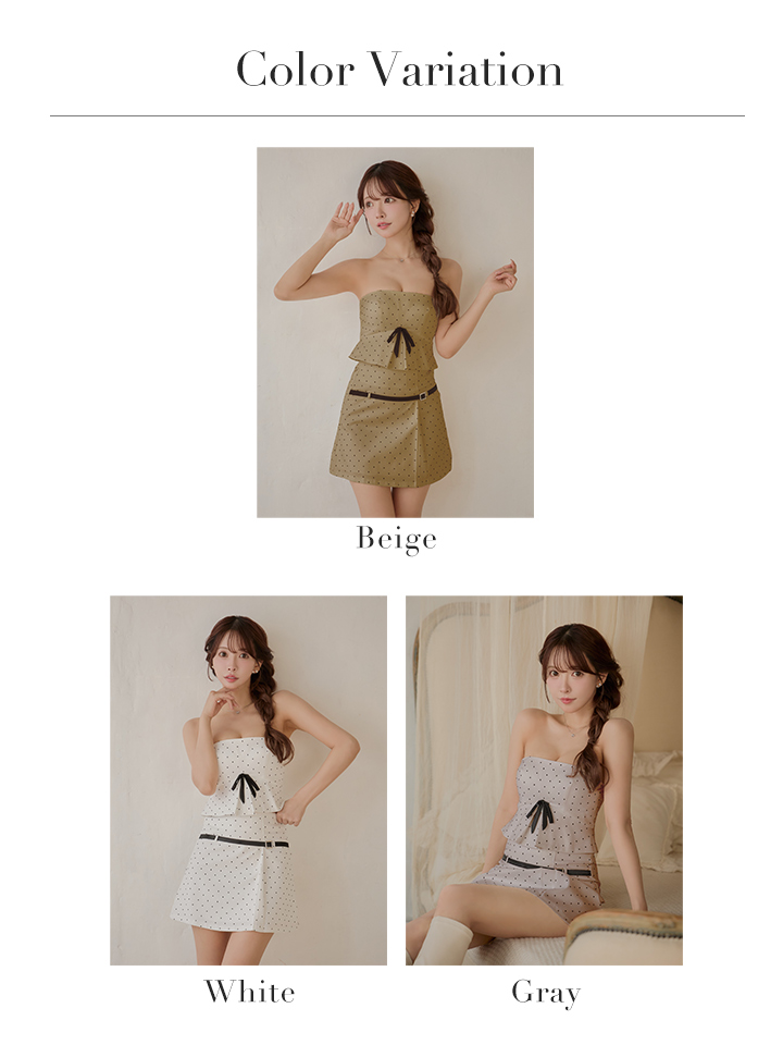 【予約商品/12月上旬-12月中旬発送予定】XSサイズあり【ANGEL R/エンジェルアール】ベアトップ / フロントリボン / ベルト / ドット / セパレート / フレア / マイクロミニドレス / キャバドレス[OF2] [AR25256-W-S251215]