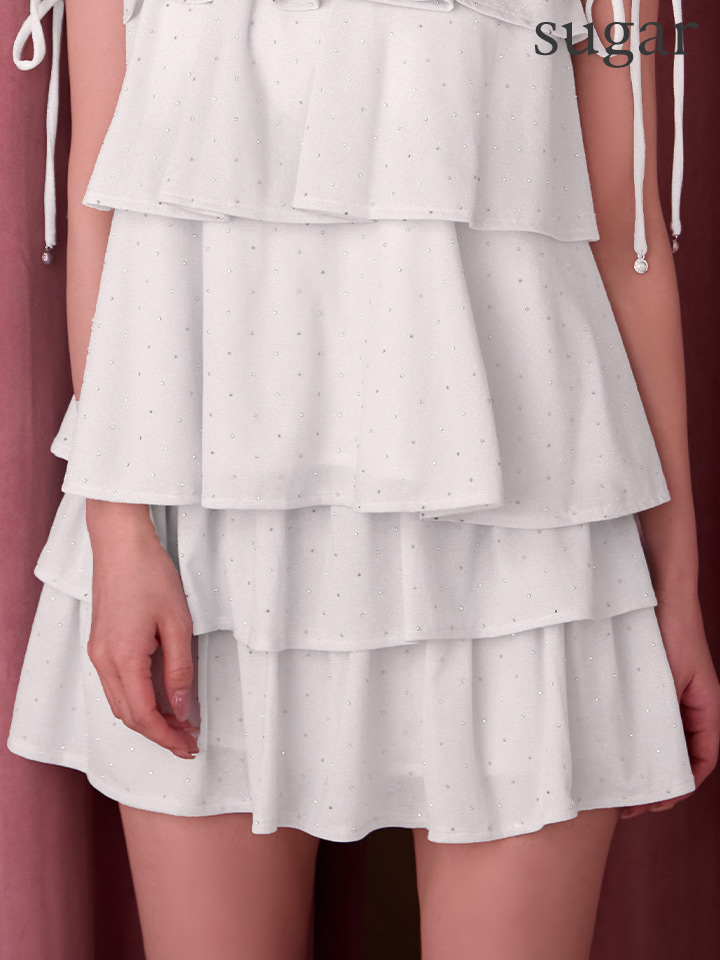 シャープな煌めきを帯びたラメ糸が織り込まれたフェミニンなミニドレス♡