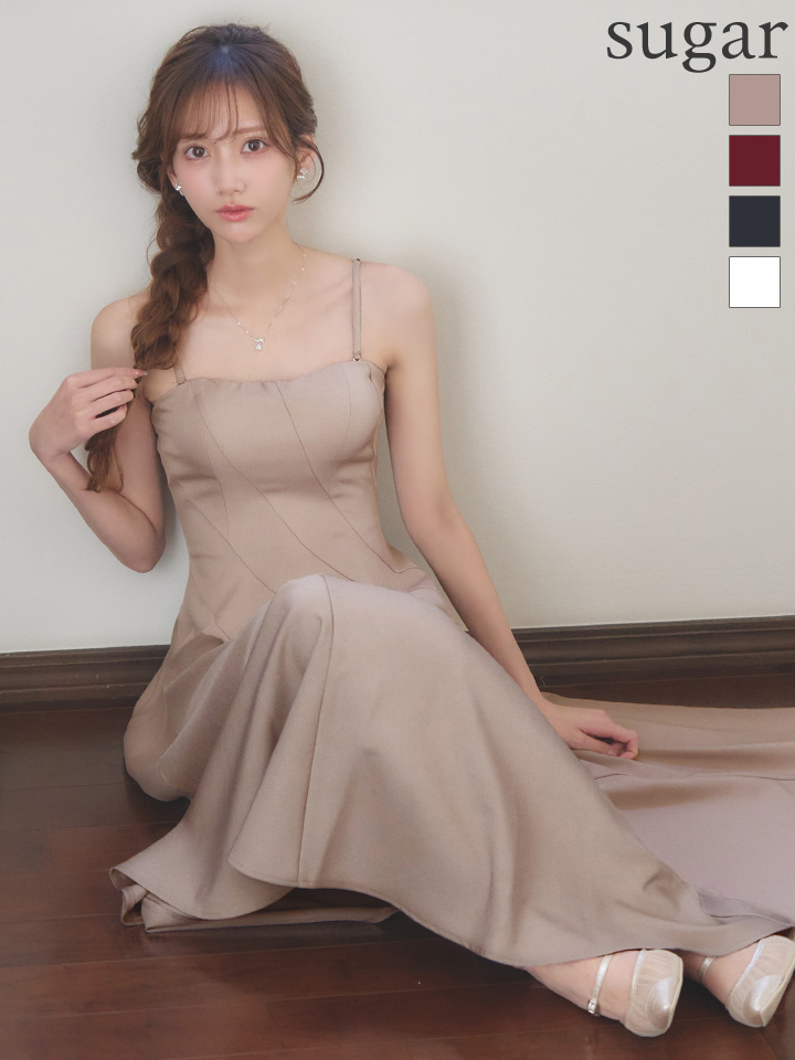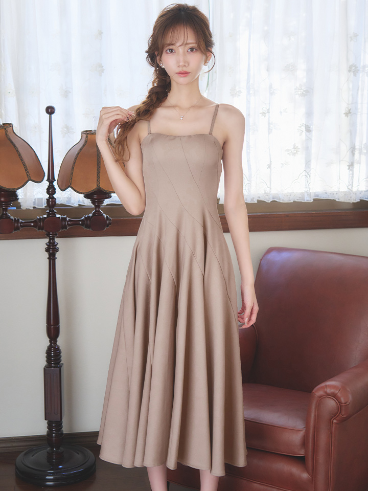 XSサイズあり【ANDY/アンディ】シンプル/ ワンカラー/ ストレッチ/ キャミ/ ベア/ フレア/ ミモレ丈/ ミディアムドレス/ ワンピース/ キャバドレス[OF05] [ON3025-BE-S251216]