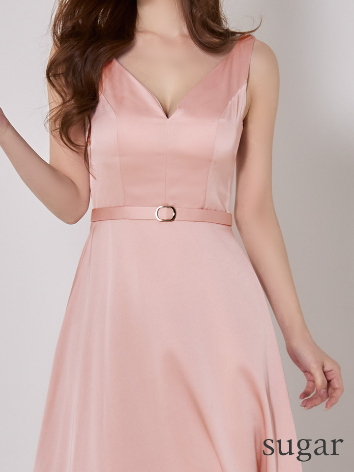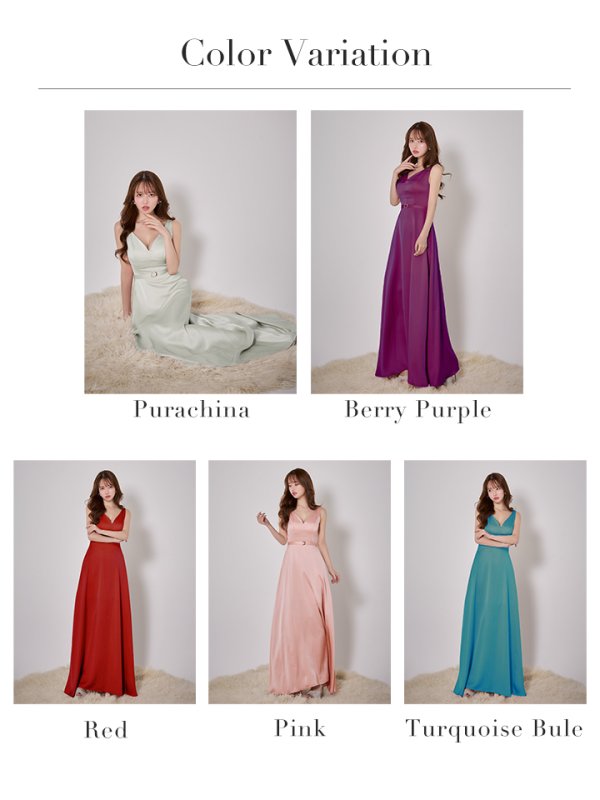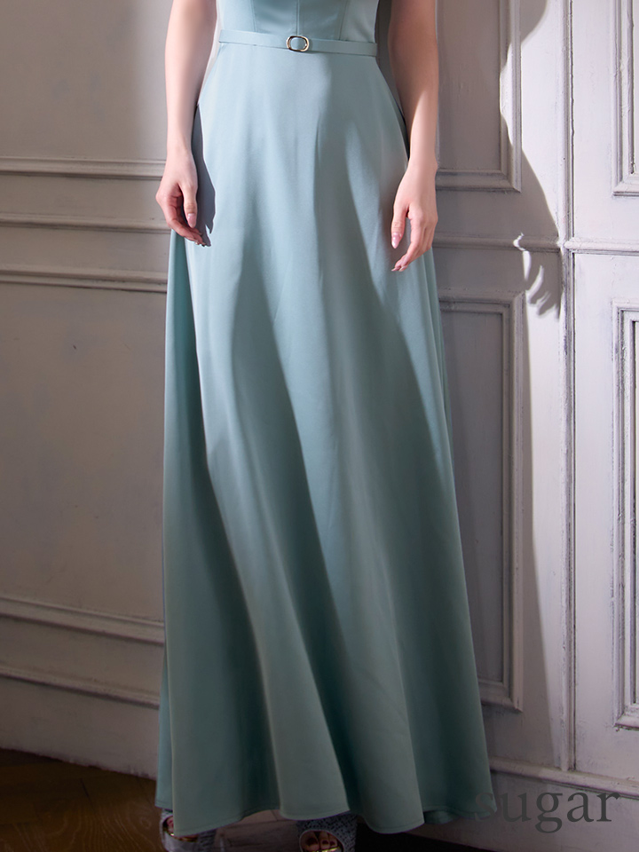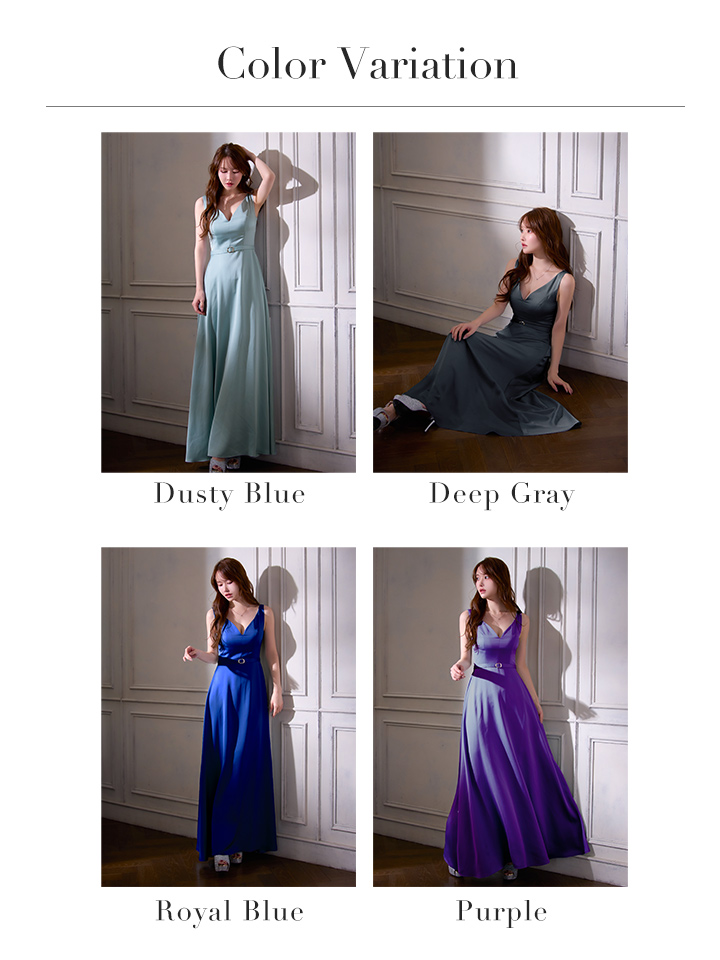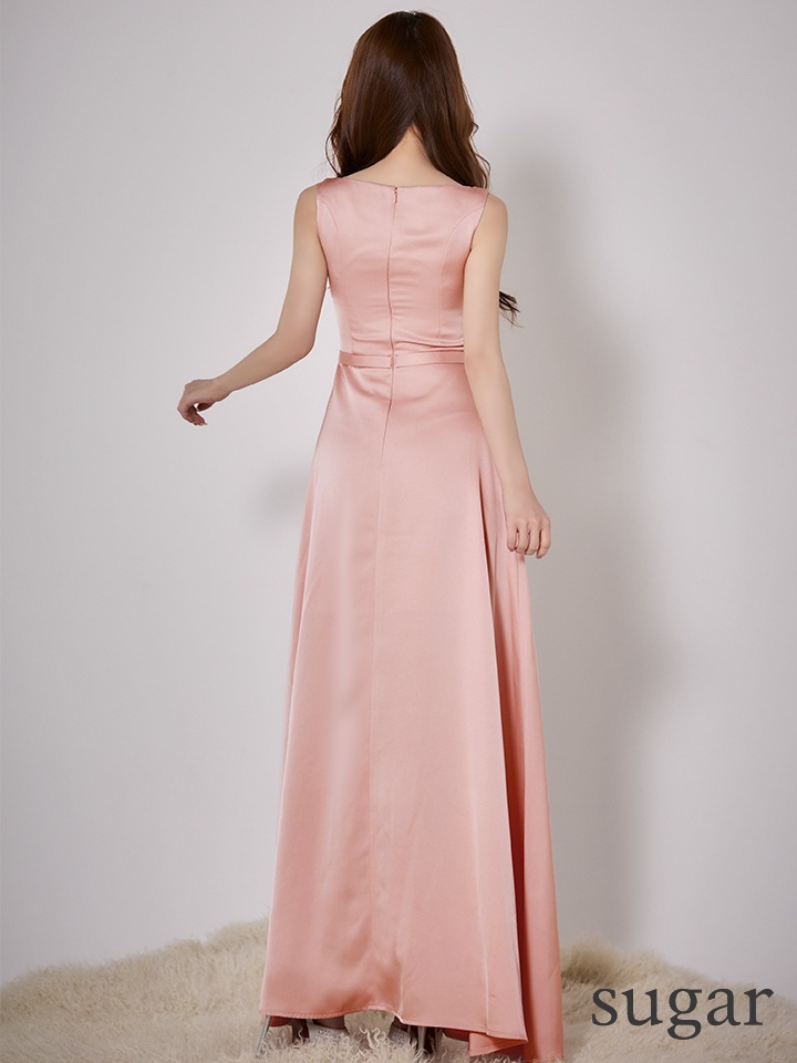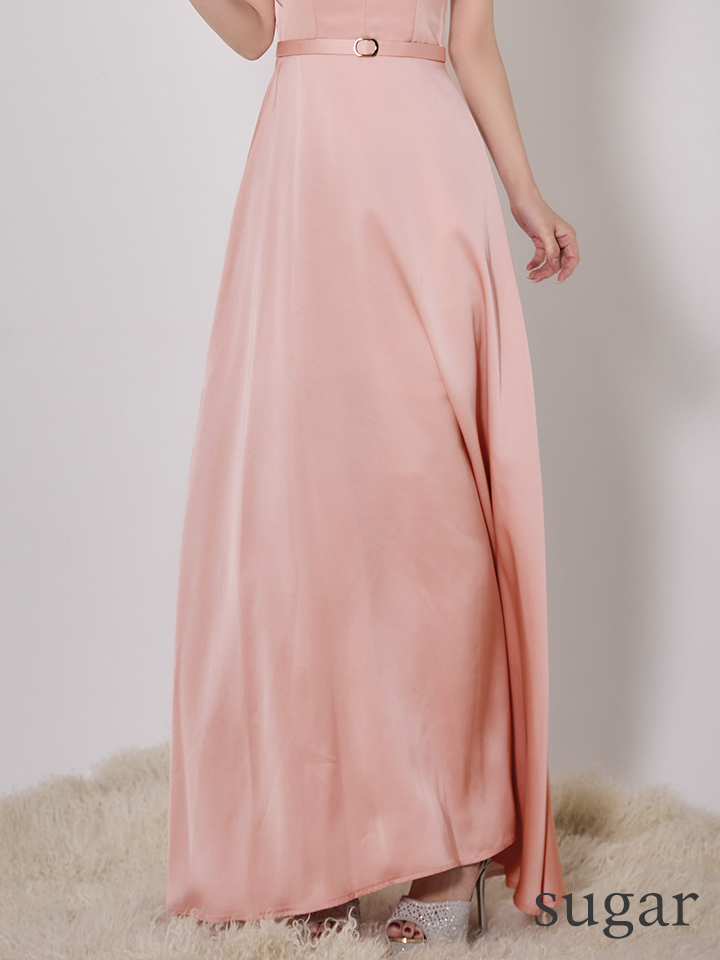 【VELIQUE/ヴェリーク】シンプル/ノースリーブ/ Vネック/ サテン/ ウエストマーク/ Aライン/ フレア/ ワンピース/ ロングドレス/ キャバドレスlong【HC02】 [BYRS-240-GR-S251216]