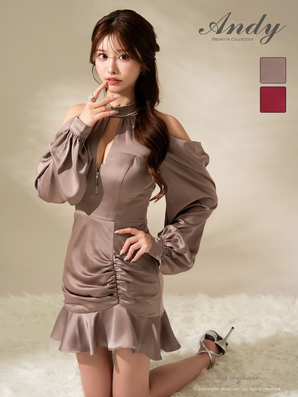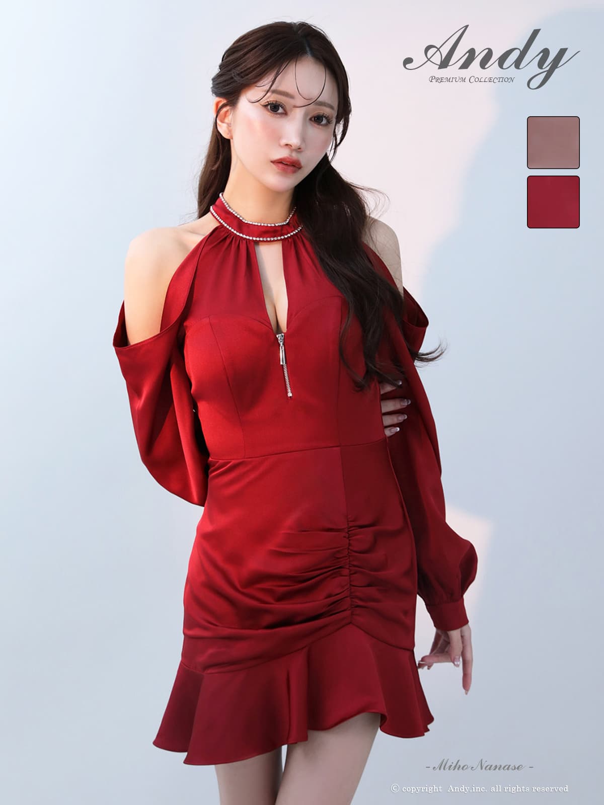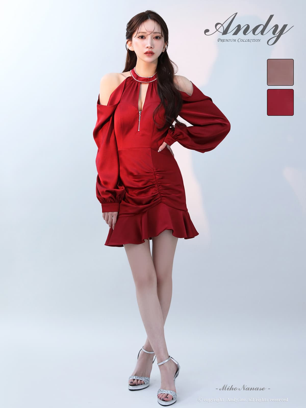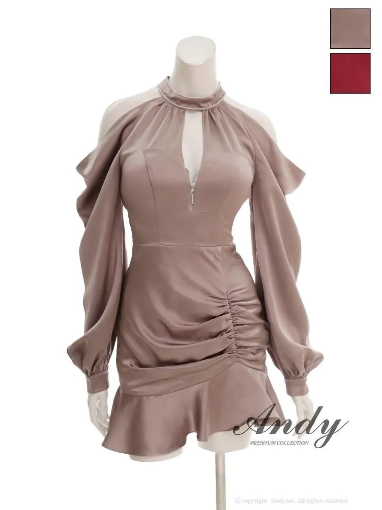 【ANDY/アンディ】肩見せロングスリープが華奢見え抜群のフレアミニドレス♡