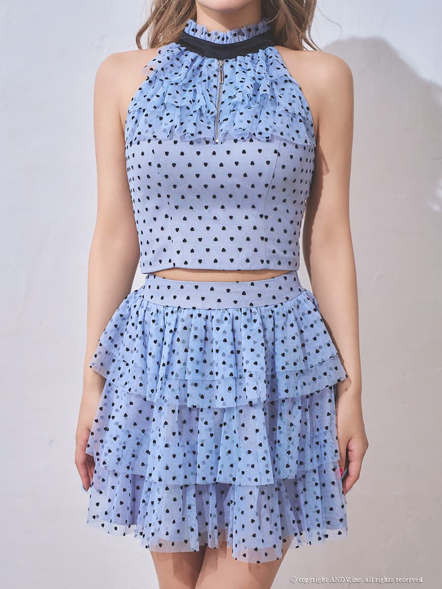 XSサイズあり【an/アン】ハイネック/ バストジップ/ ノースリーブ/ フリル/ ドット/ フレア/ セットアップ/ ミニドレス/ キャバドレス[OF05] [AOC4043-BE-S251215]