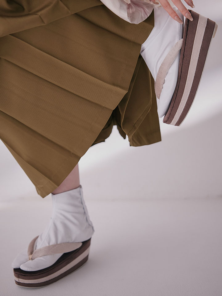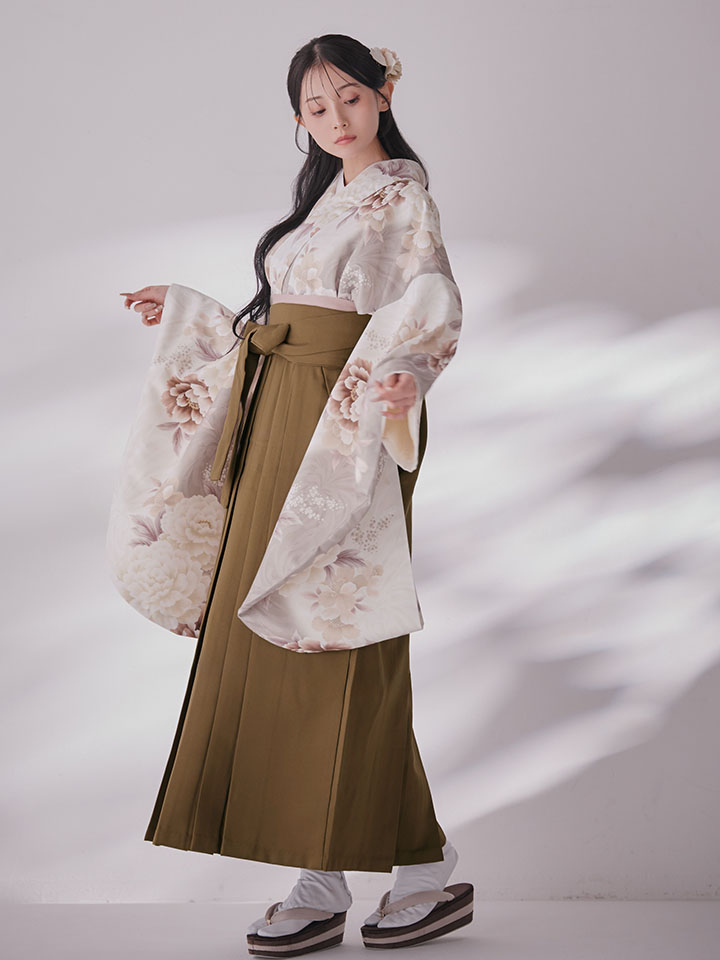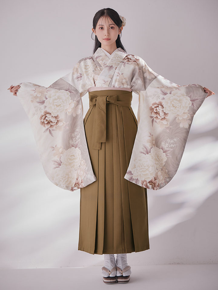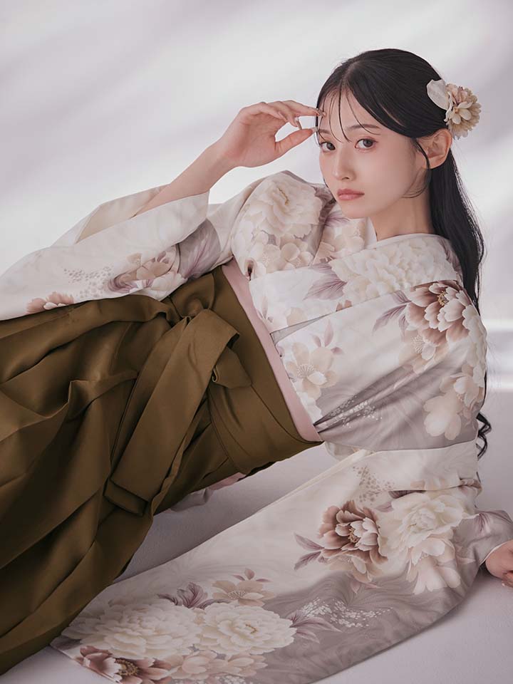 ブラウンとホワイトの優しい配色が可愛らしい印象の袴。。