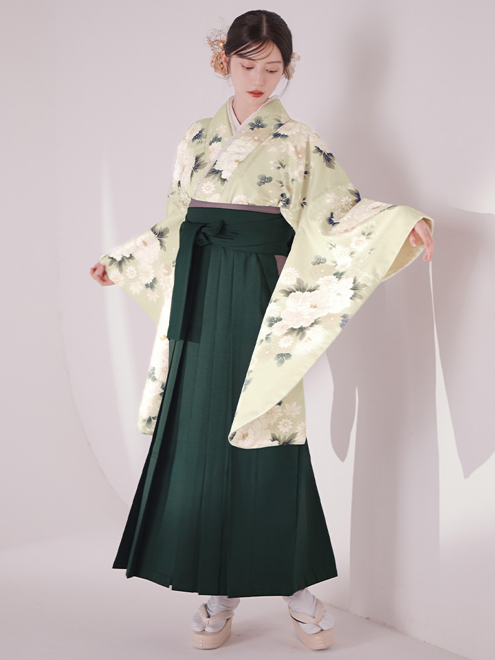 【予約商品/1月中旬発送】牡丹×菊 くすみグリーン二尺袖着物【卒業袴3点セット 二尺袖着物/帯/袴】 [HR-115-ok-GR-F-25EN-251220]
