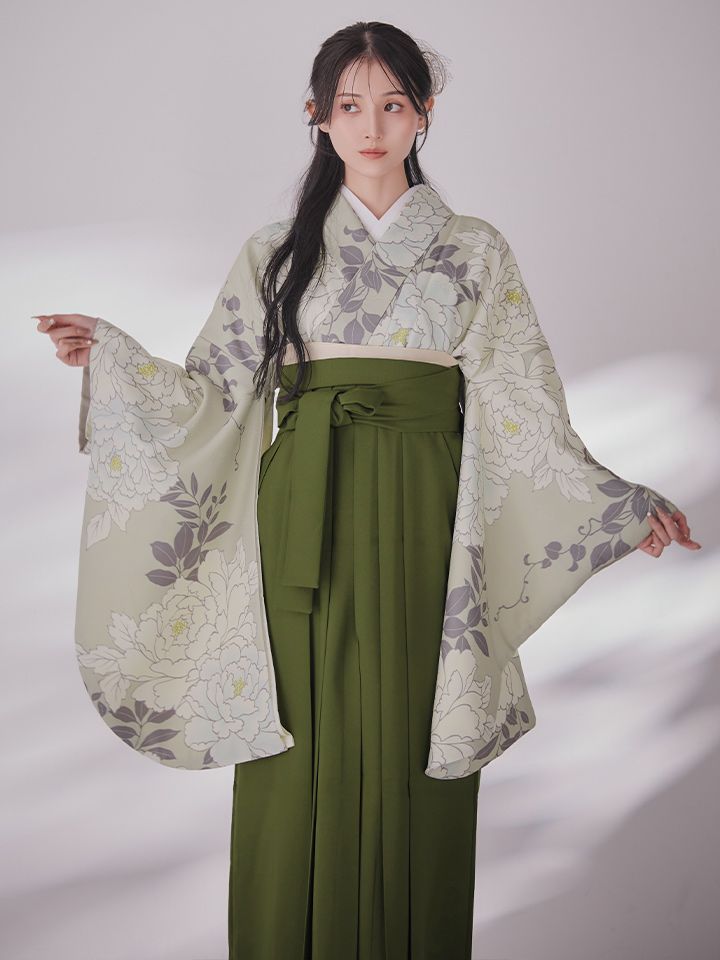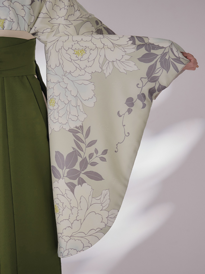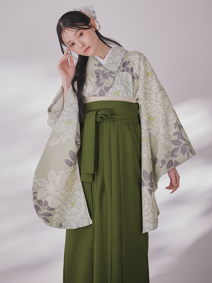 【予約商品 / 1月中旬発送予定】白牡丹 モカ二尺袖着物【卒業袴3点セット 二尺袖着物/帯/袴】 [HR-101-ok-MOC-F-25MU-251220]
