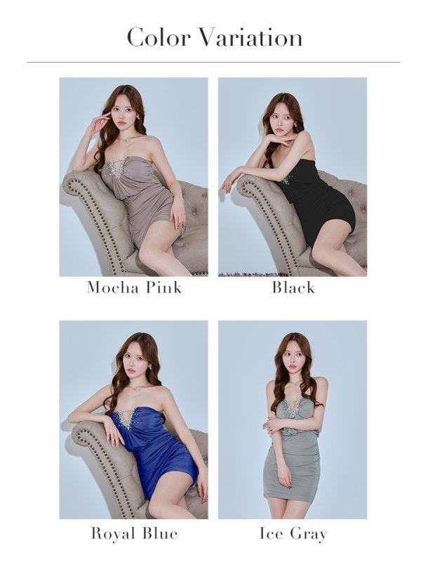 XSサイズあり【ANGEL R/エンジェルアール】ベアトップ/ バストカット/ フロントビジュー/ ギャザー/ ドレープ/ タイト/ マイクロミニドレス/ キャバドレス[OF2] [AR25353-RBL-S251218]