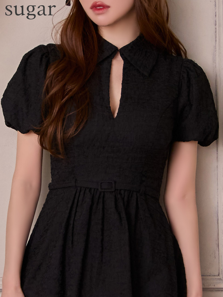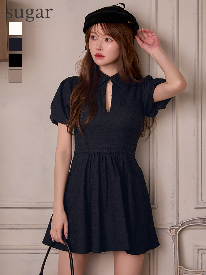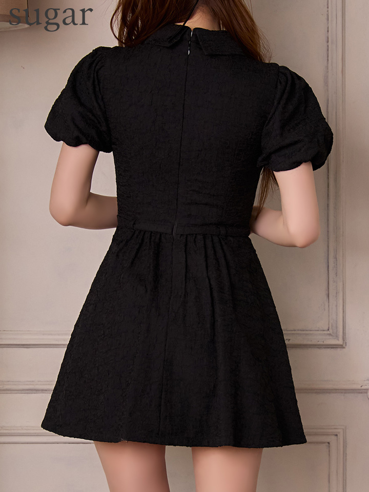 XSサイズあり【DEA./ディア】ワッフル素材/ クラシカル/ 襟付き/ フレア/ ミニドレス/ キャバドレス[OF08] [DE4319-NV-S251218]