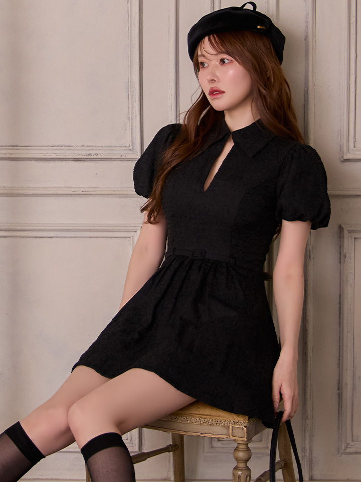 シンプルな中にディテールの美しさが光る、上品なミニ丈ドレス。