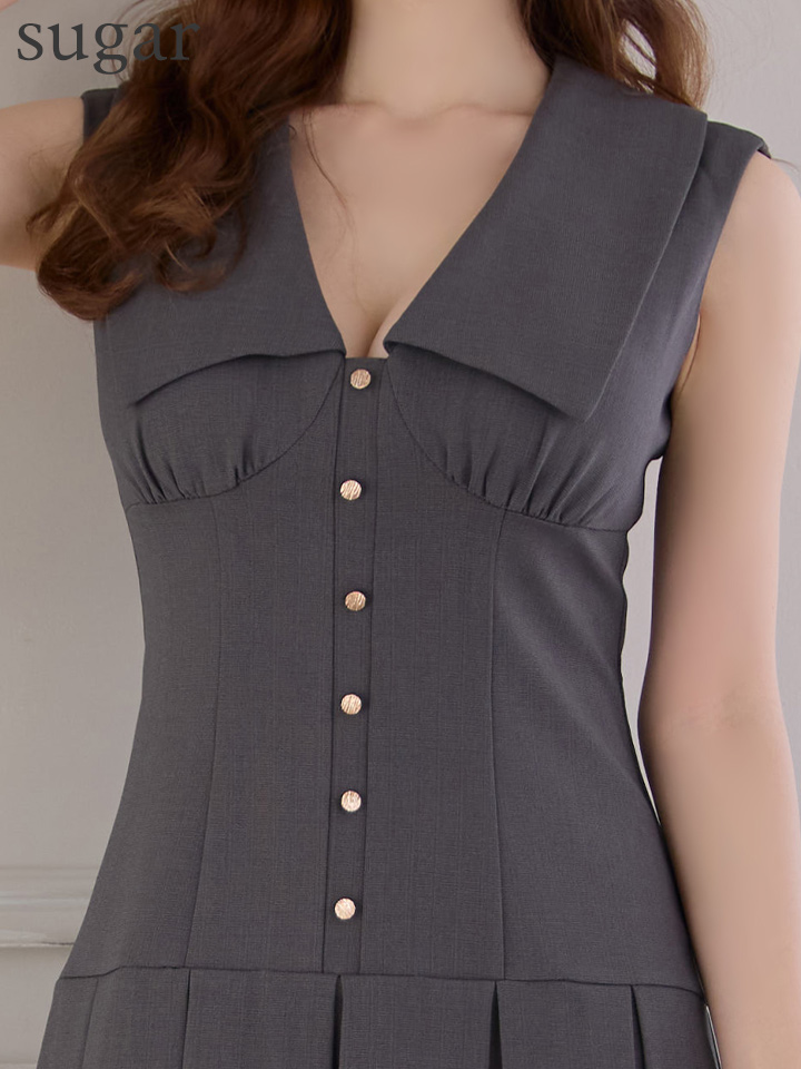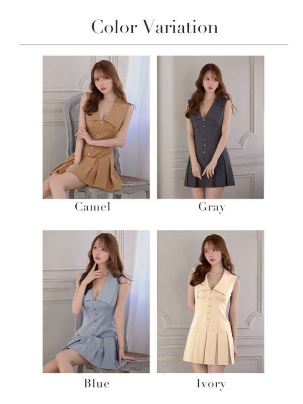Lサイズあり【DEA./ディア】ビッグカラー/ ノースリーブ/ プリーツ/ フレア/ ミニドレス/ キャバドレス[OF08] [DE3395-IV-S251218]