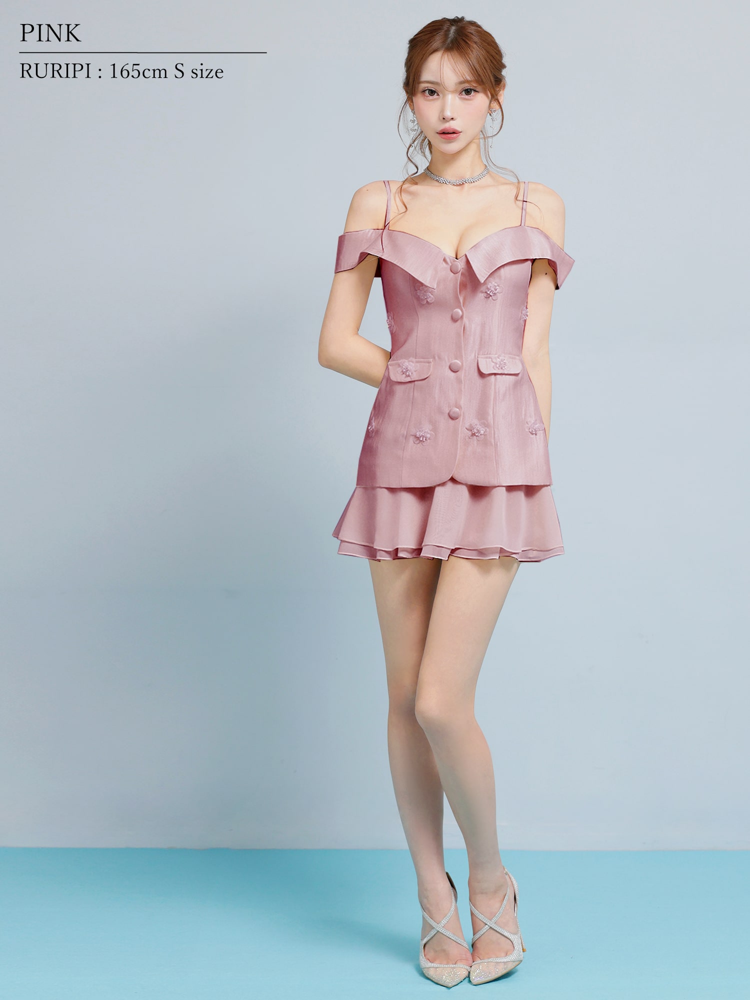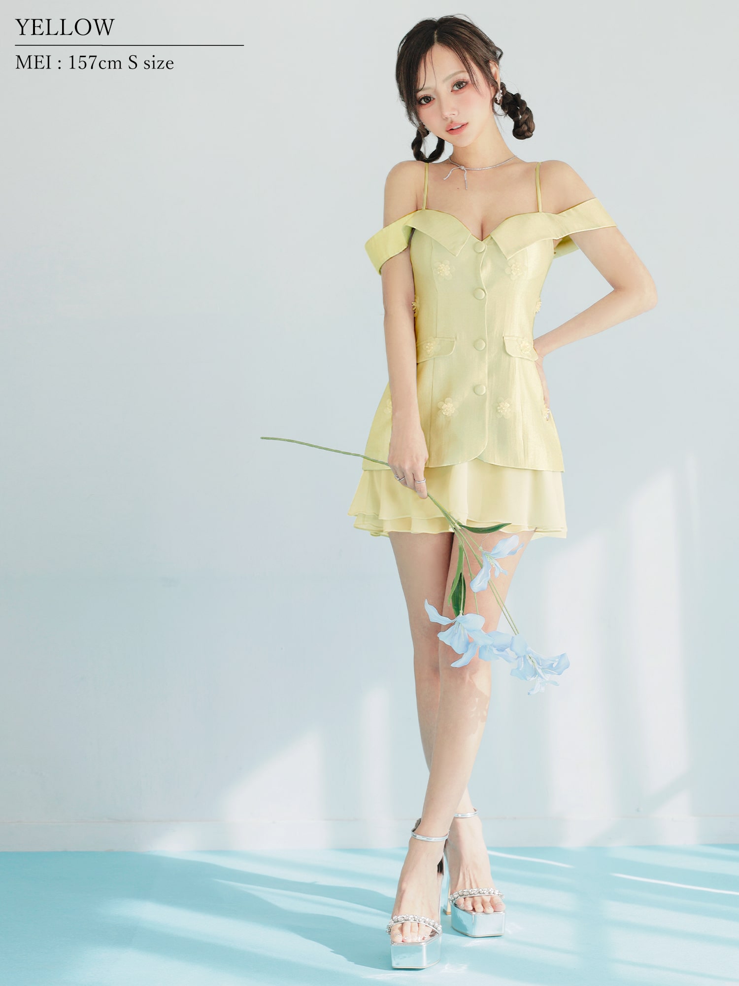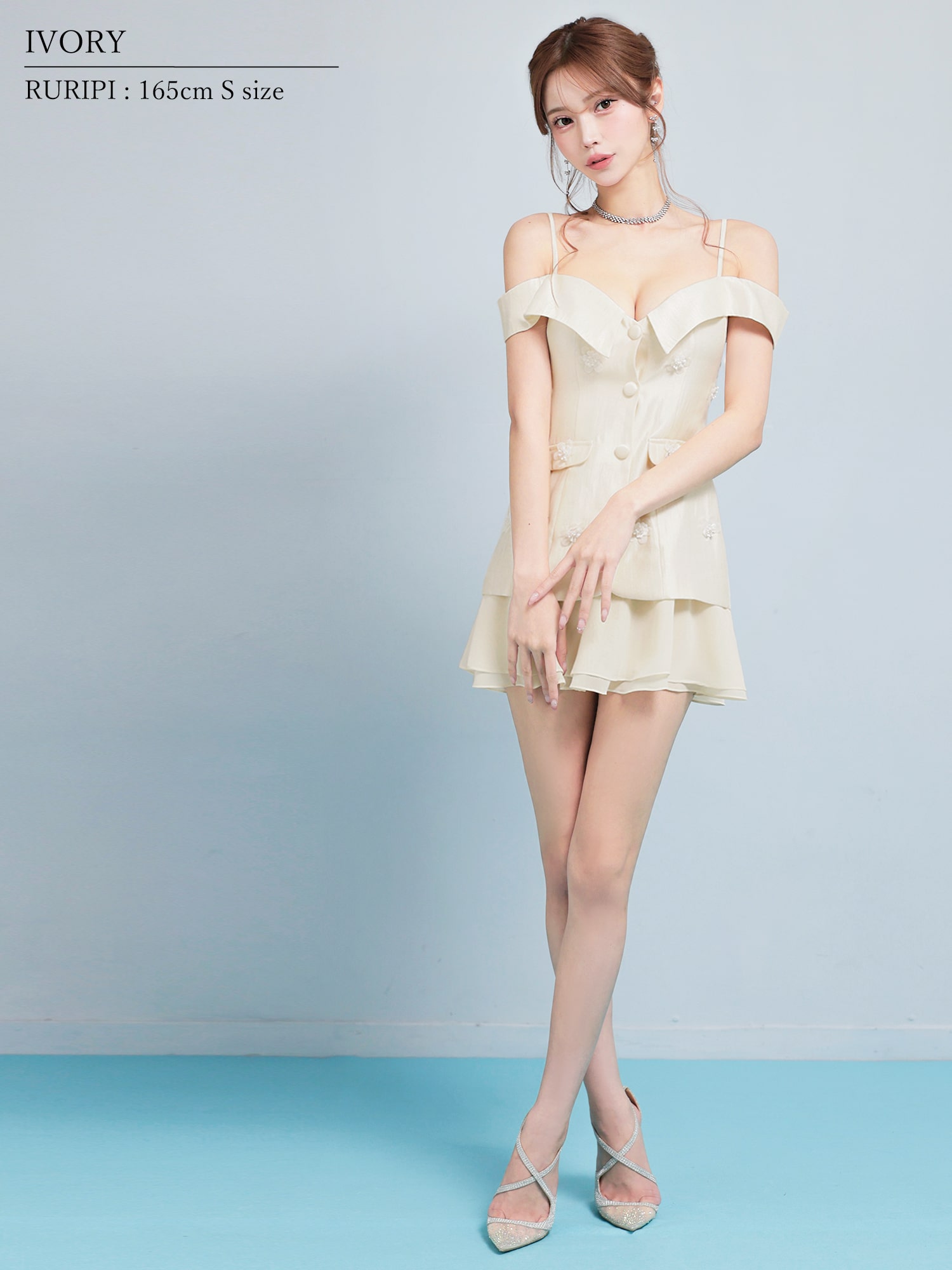 【予約商品/1月上旬-1月中旬発送予定】XSサイズあり【ANGEL R/エンジェルアール】オフショルダー/ ボタン/ ポケット/ フラワー/ シフォン/ フレア/ マイクロミニドレス/ キャバドレス[OF2] [AR26305-IV-2512]