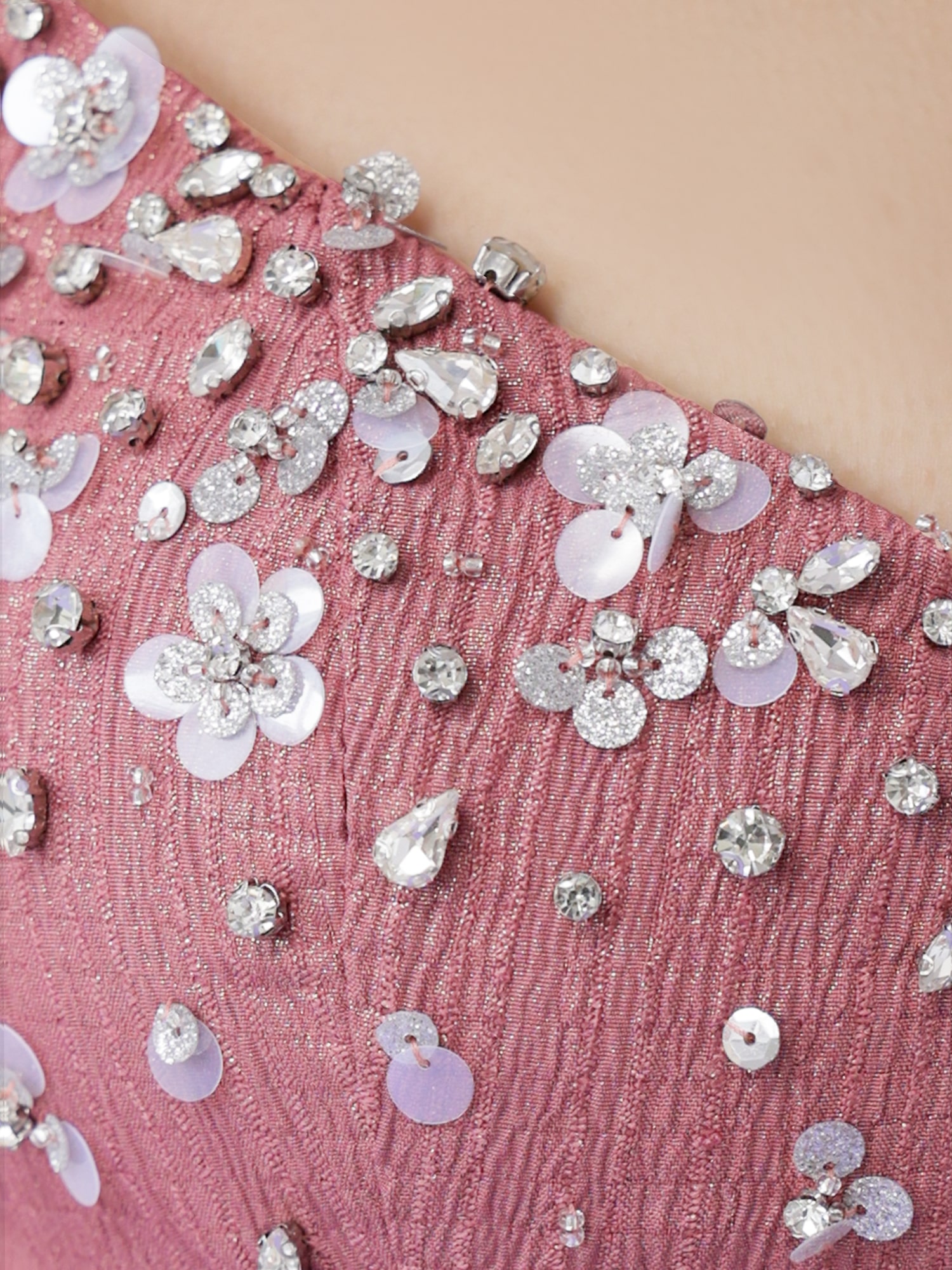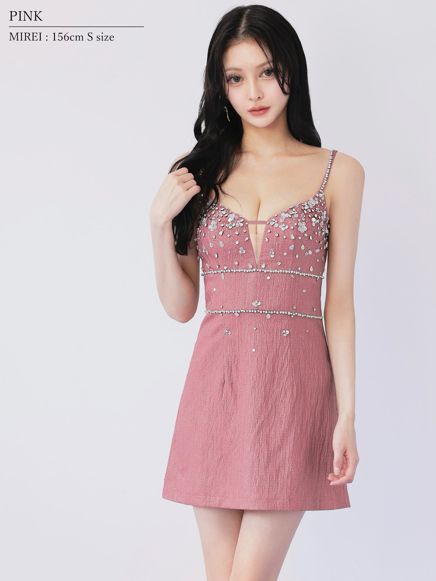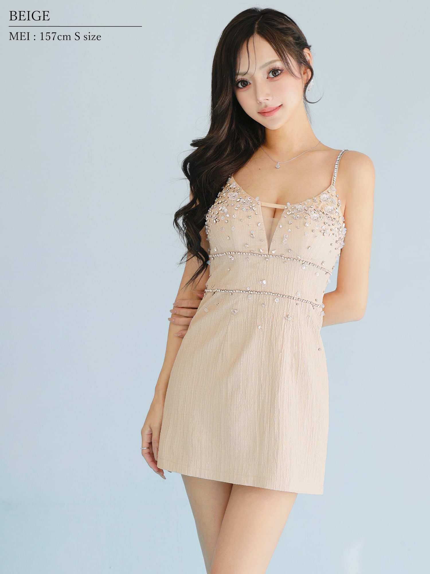 胸元に贅沢にあしらわれたビジュー装飾が、華やかさを引き立てるキャミソールドレス。