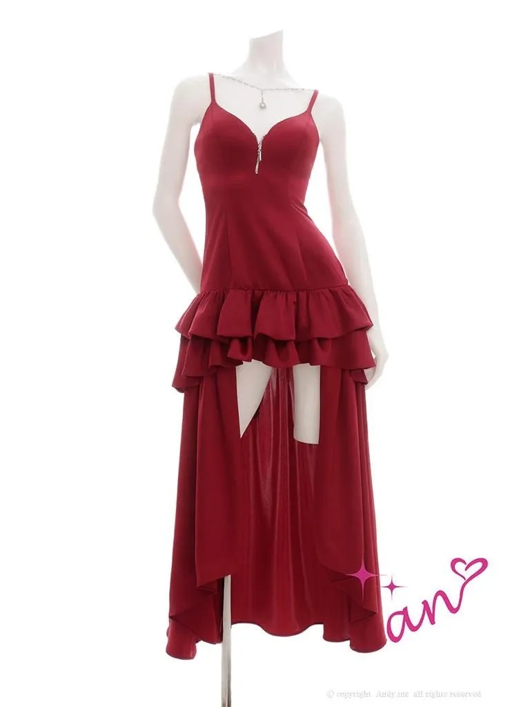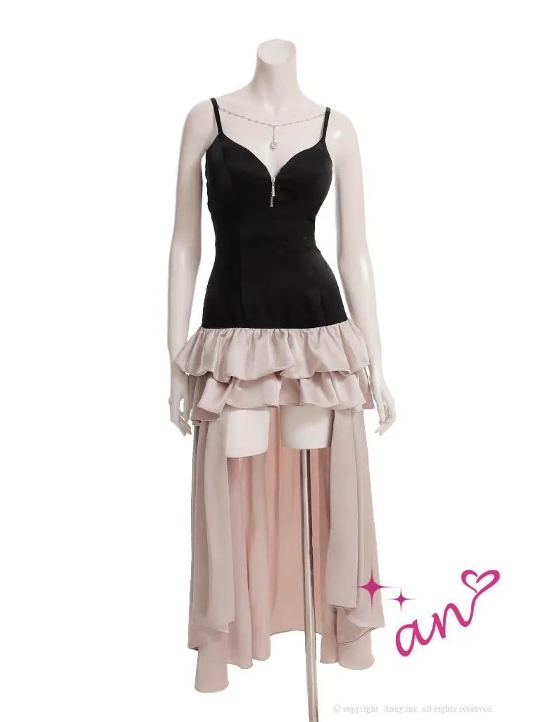 XSサイズあり【an /アン】 バストジップ/ チャーム付き/ キャミソール/ ティアードフリル/ フレア/ テールカット/ ロングドレス/ キャバドレス[OF05] [AOC4028-BxPBE-2512]