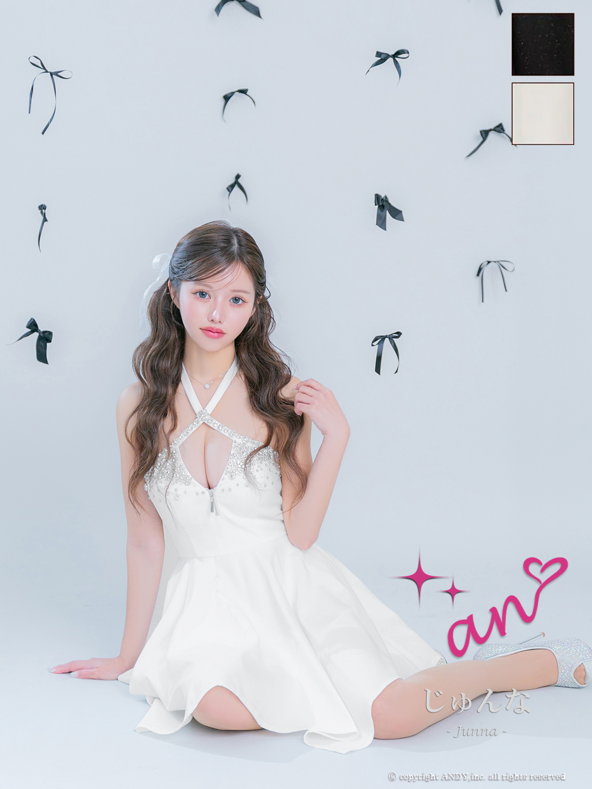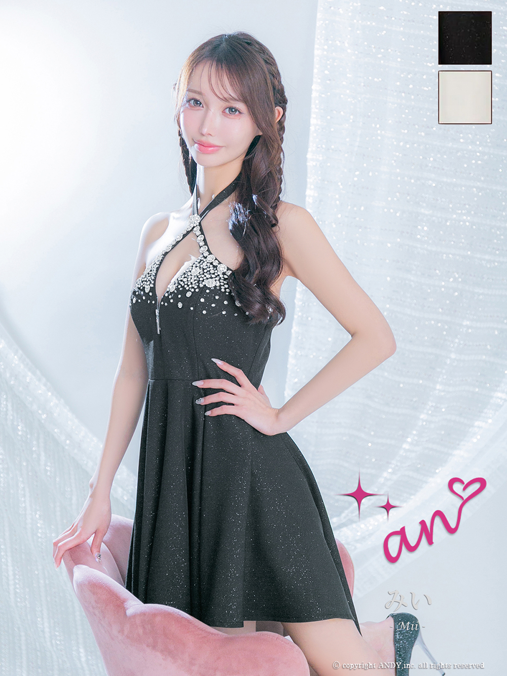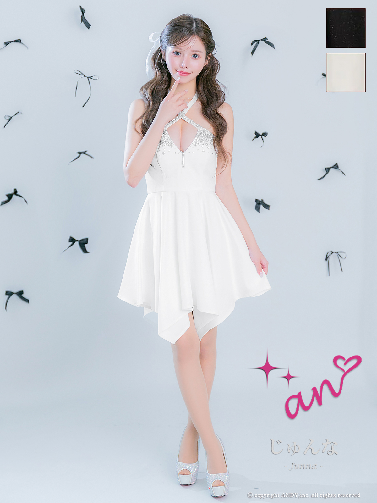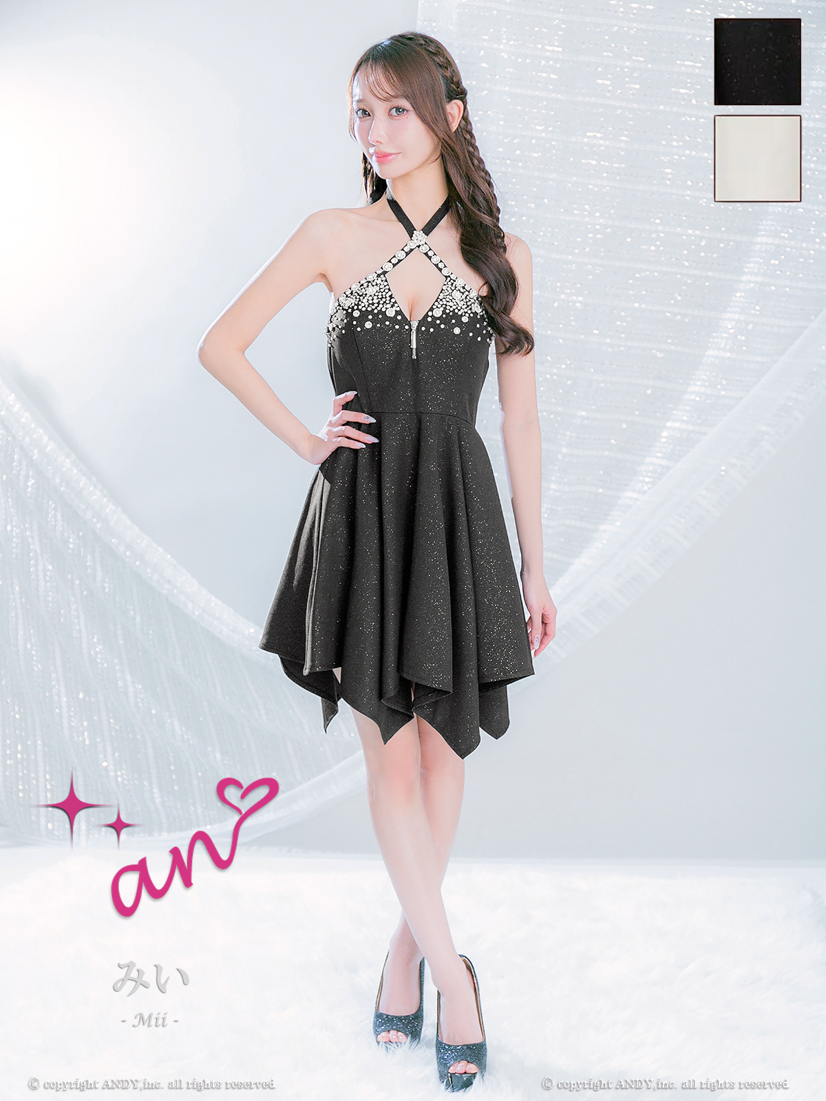 XSサイズあり【an/アン】ホルターネック/ バストカットアウト/ノースリーブ/ ビジュー/ イレヘムスカート/ フレア/ ミニドレス/ キャバドレス[OF05] [AOC4037-B-2512]