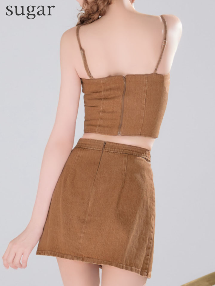 ジップデザイン×デニムがスタイリッシュなセットアップミニ。
