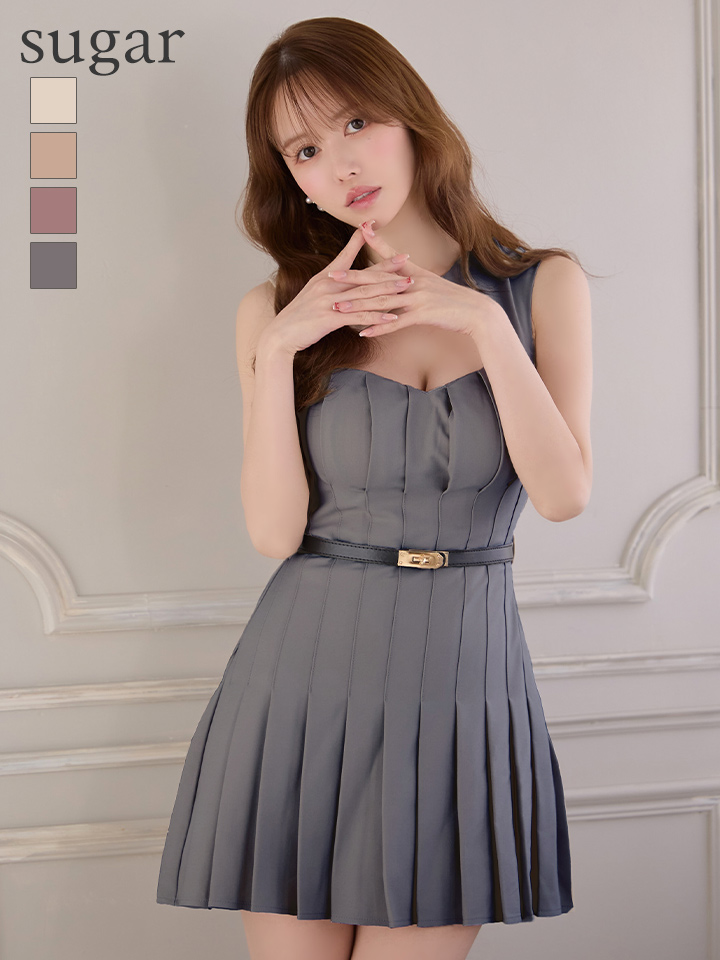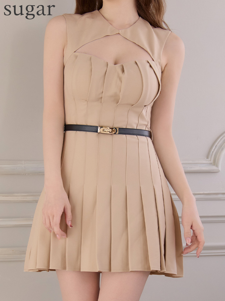 XSサイズあり【DEA./ディア】バストカット/ ベルト/ フィンプリーツ/ セミフレア/ ミニドレス/ キャバドレス[OF08] [DE3398-IV-S251223]
