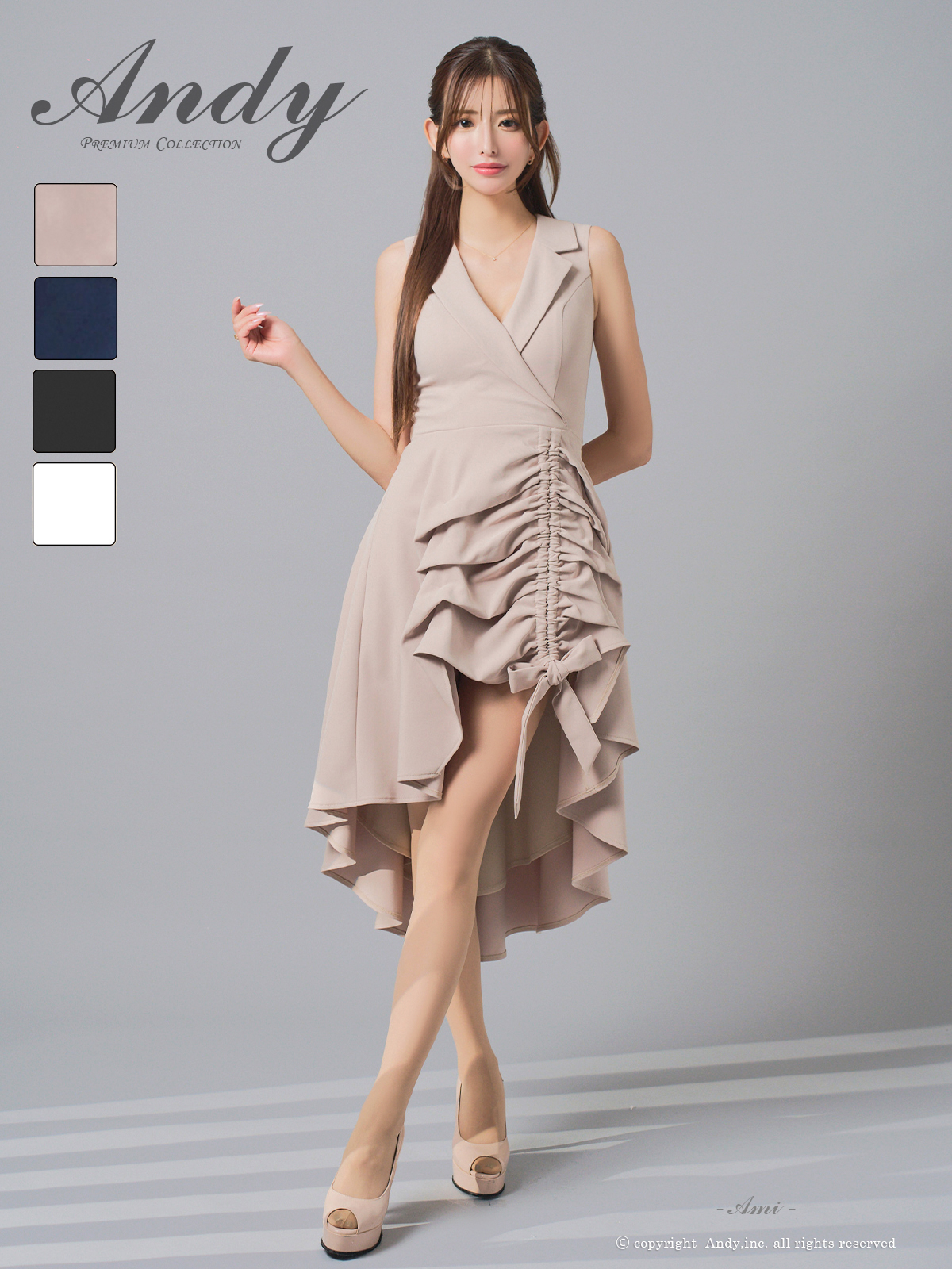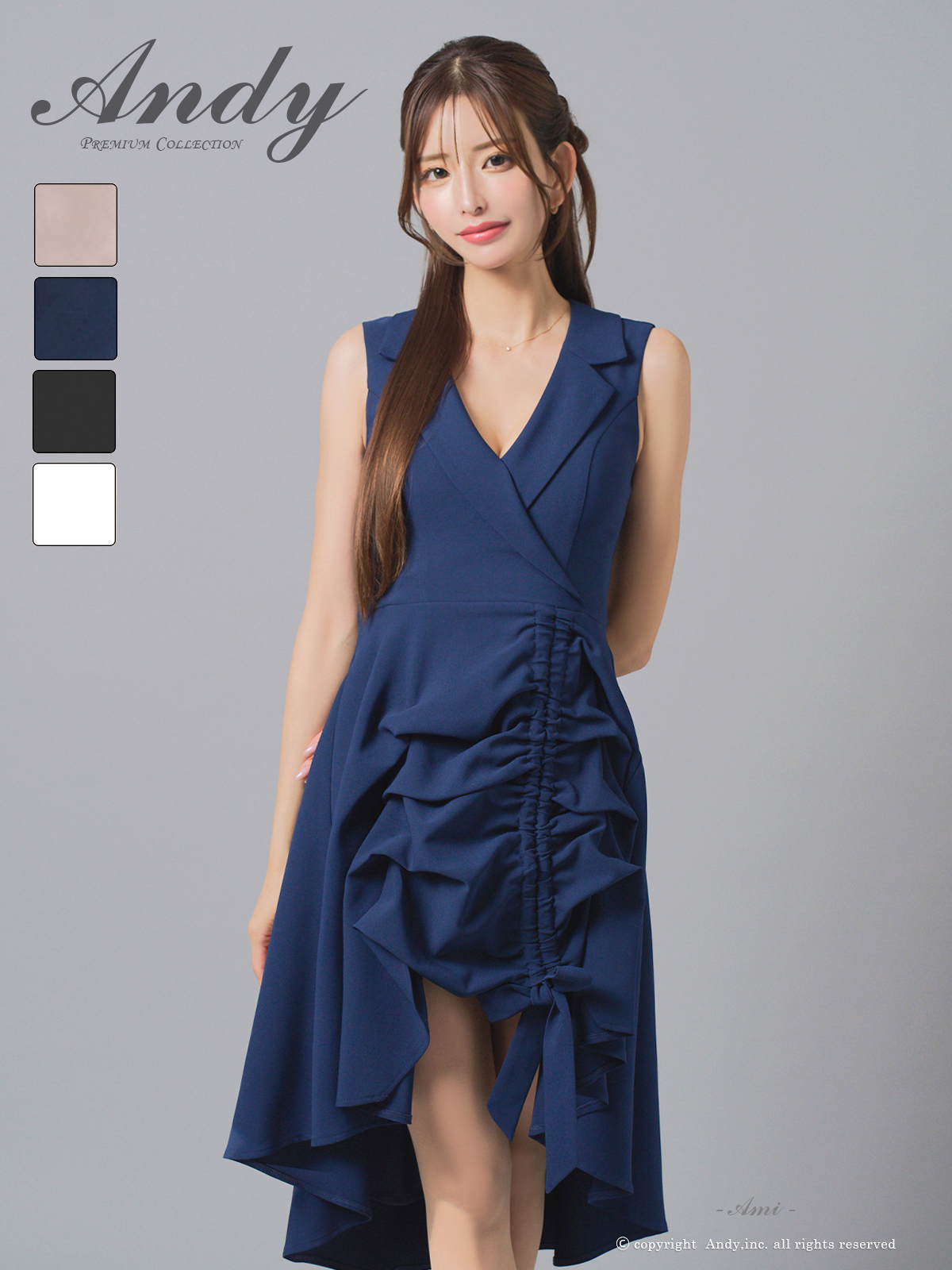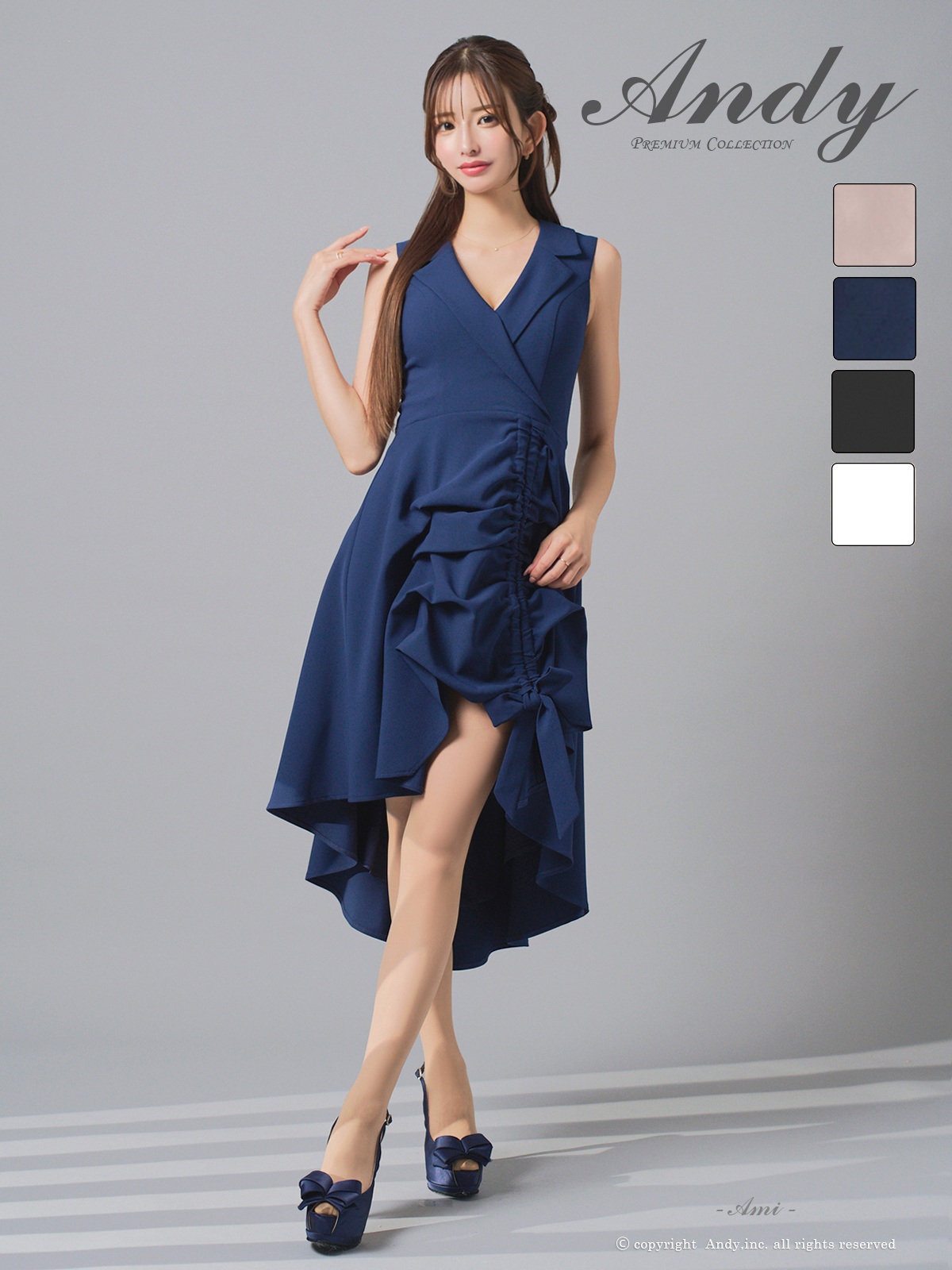 XSサイズあり【ANDY/アンディ】リボン/ 襟付き/ ノースリーブ/ フリル/ テールカット/ ロングドレス/ キャバドレス[OF05] [ON3021-NV-S2512]
