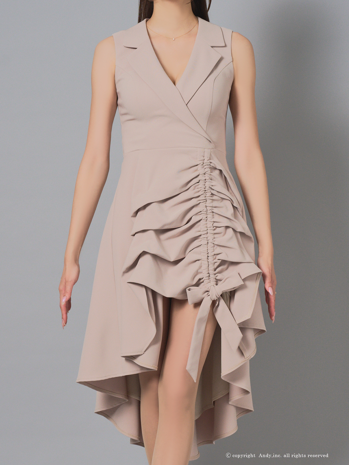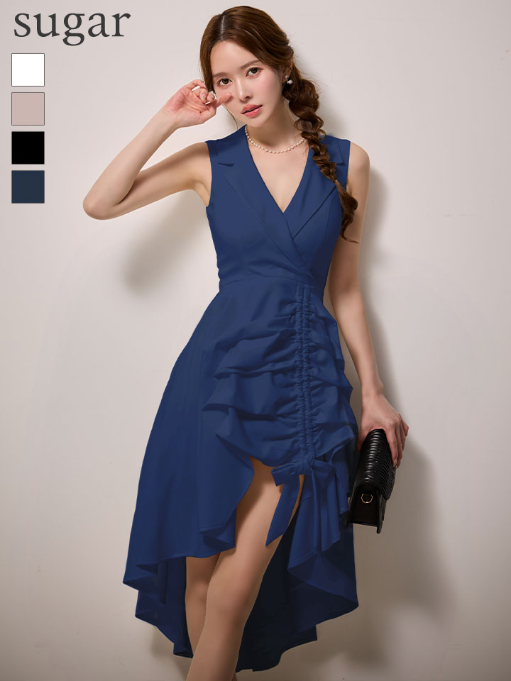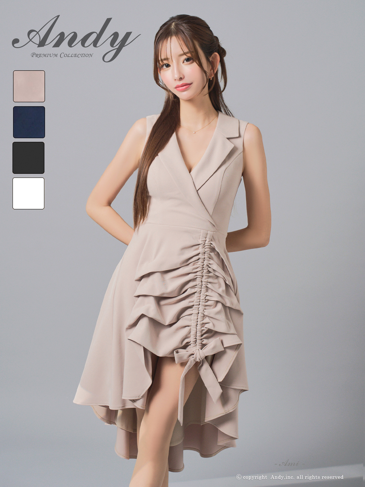 XSサイズあり【ANDY/アンディ】リボン/ 襟付き/ ノースリーブ/ フリル/ テールカット/ ロングドレス/ キャバドレス[OF05] [ON3021-NV-S2512]